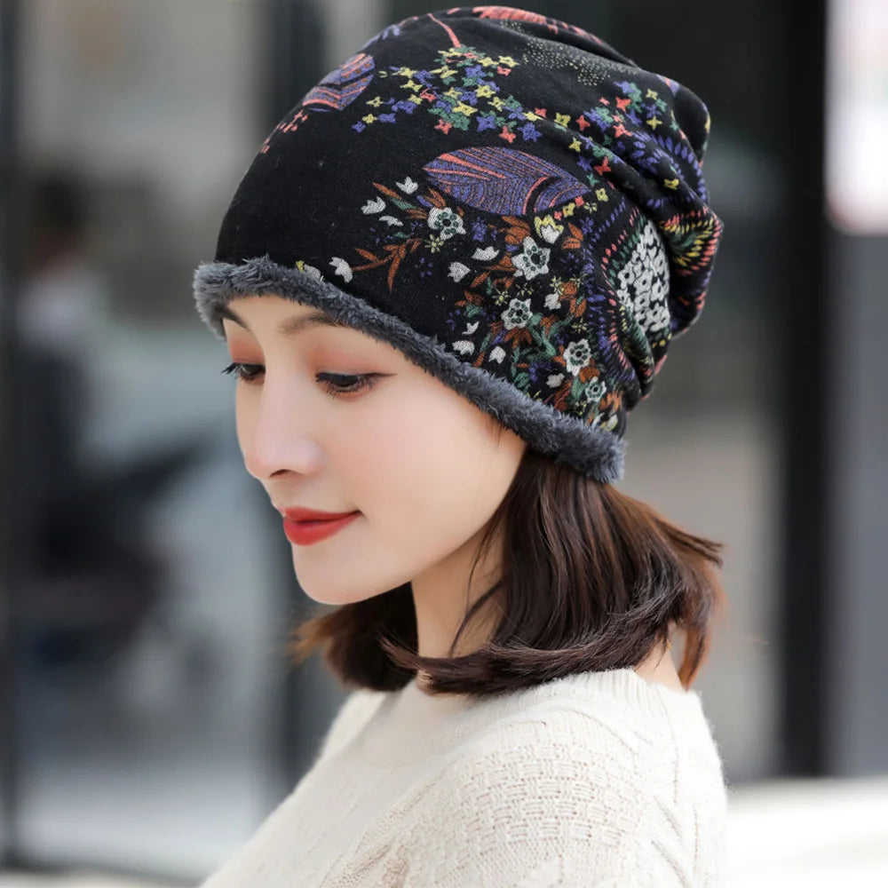Winter Warm hat | Vintage Embroidered Winter Warm Velvet Soft Bonnet Bandanas Hat