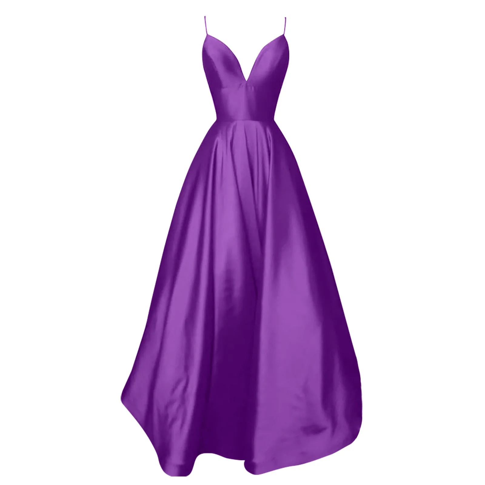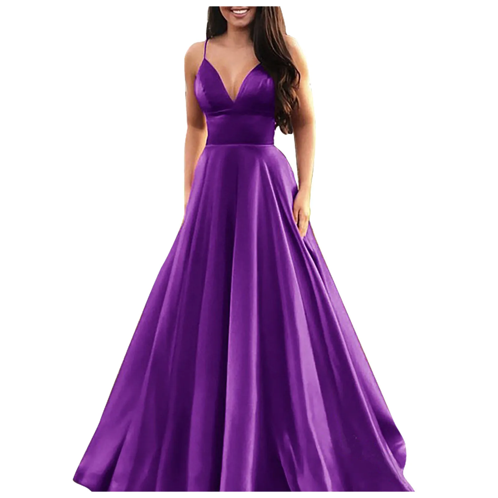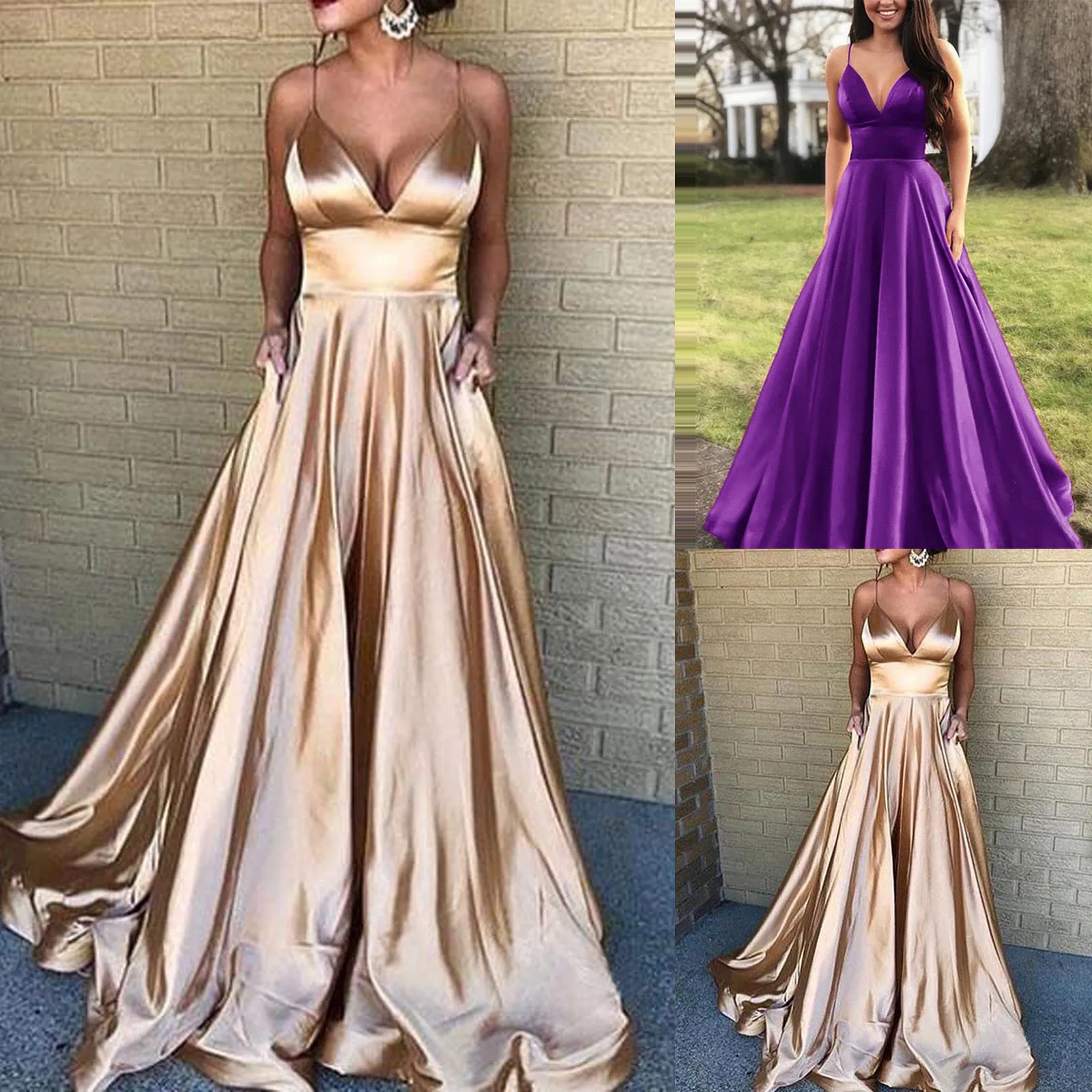 Women's Fashion Solid Color Sexy V-Neck Suspender Sleeveless Evening Dress