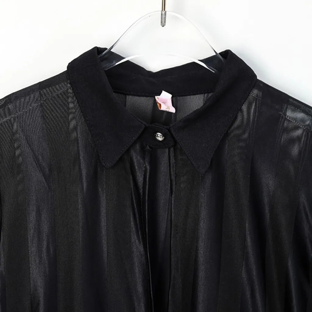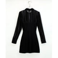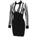 Fashion Women Long Sleeve Sheer Striped Mesh Patchwork Bodycon Casual Work Dress