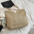 Women Straw Tote Bag | Large Capacity Vintage Shoulder Bag | Solid Color Weaving Travel Handbag