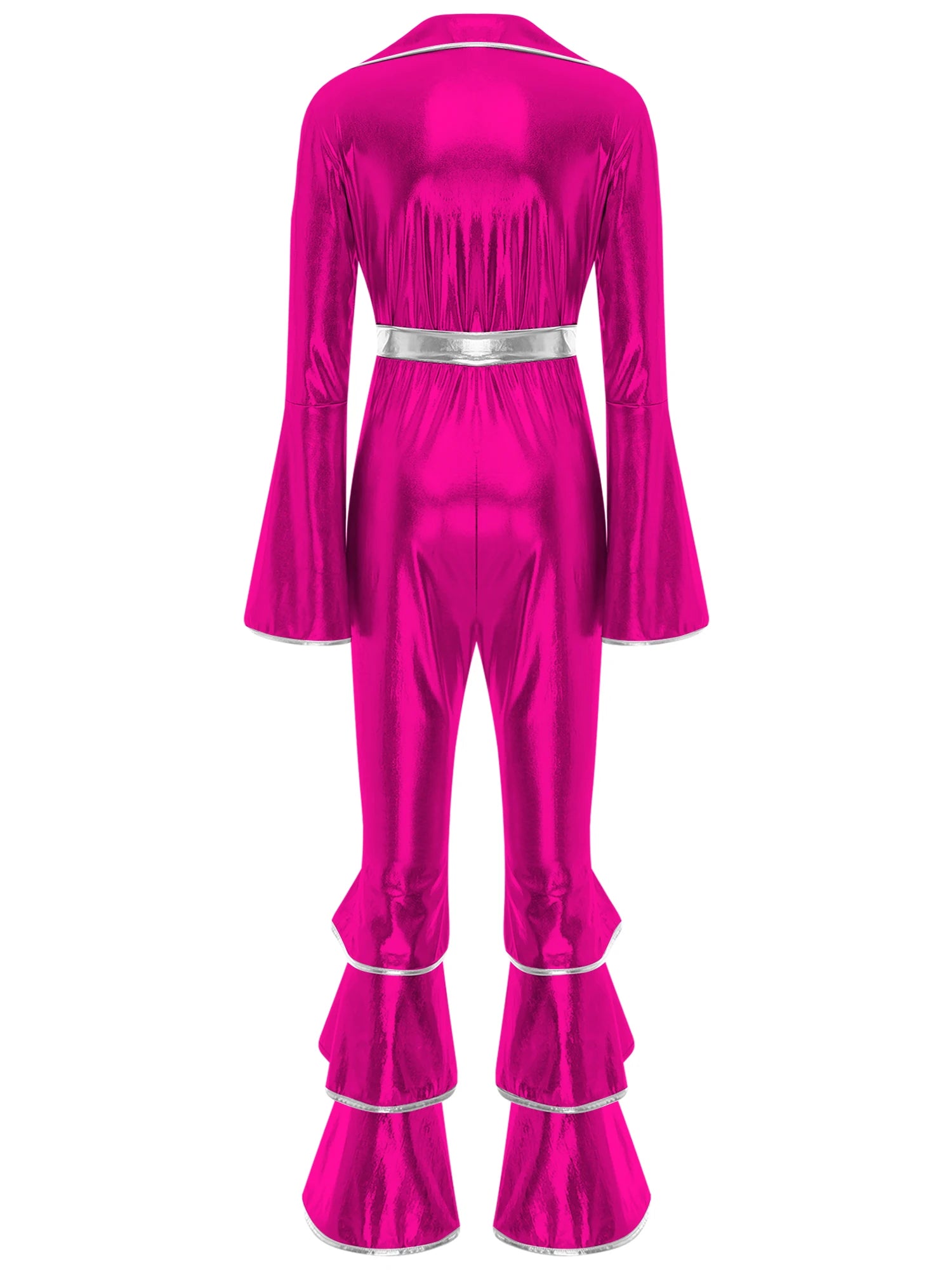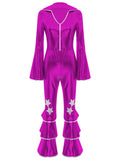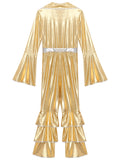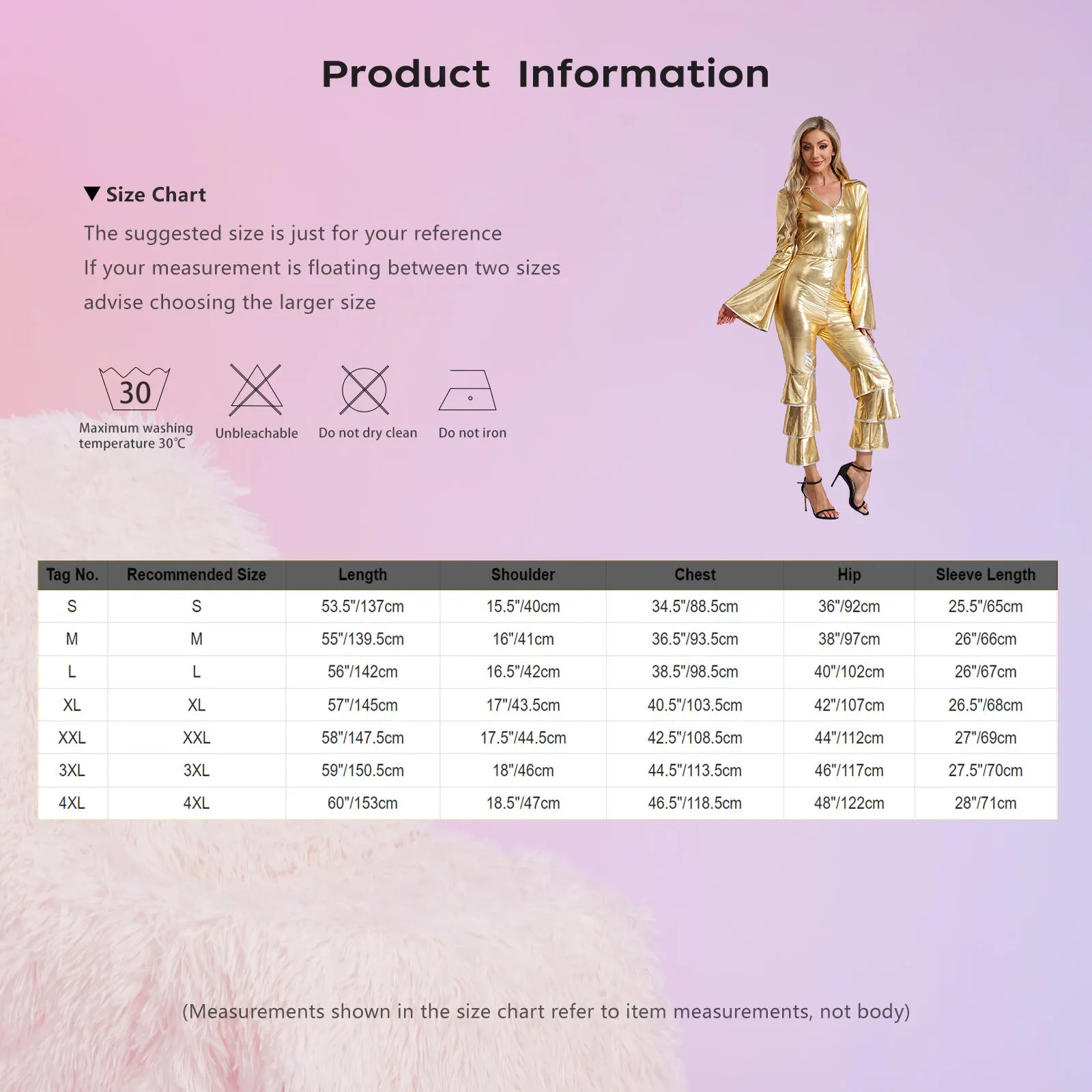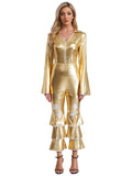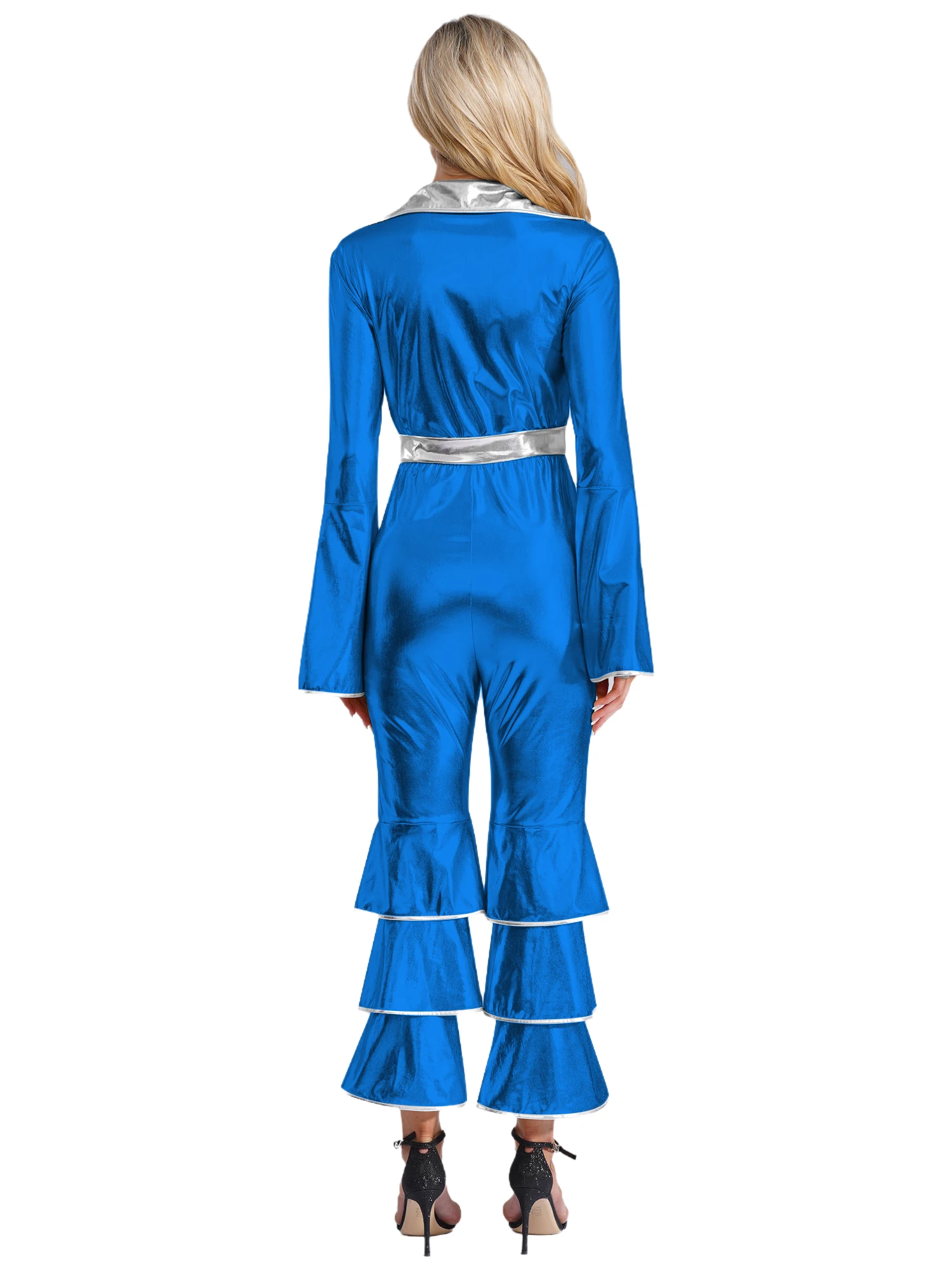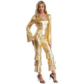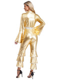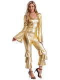 Womens 70s Disco Fever Costume 80s Prom Funky Dancing Sparkle Flare Jumpsuit Halloween Cosplay Party Hippie Fancy Dress Up
