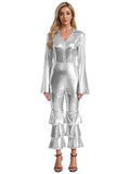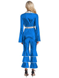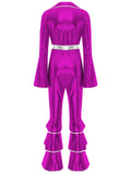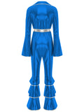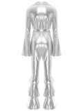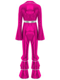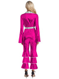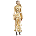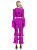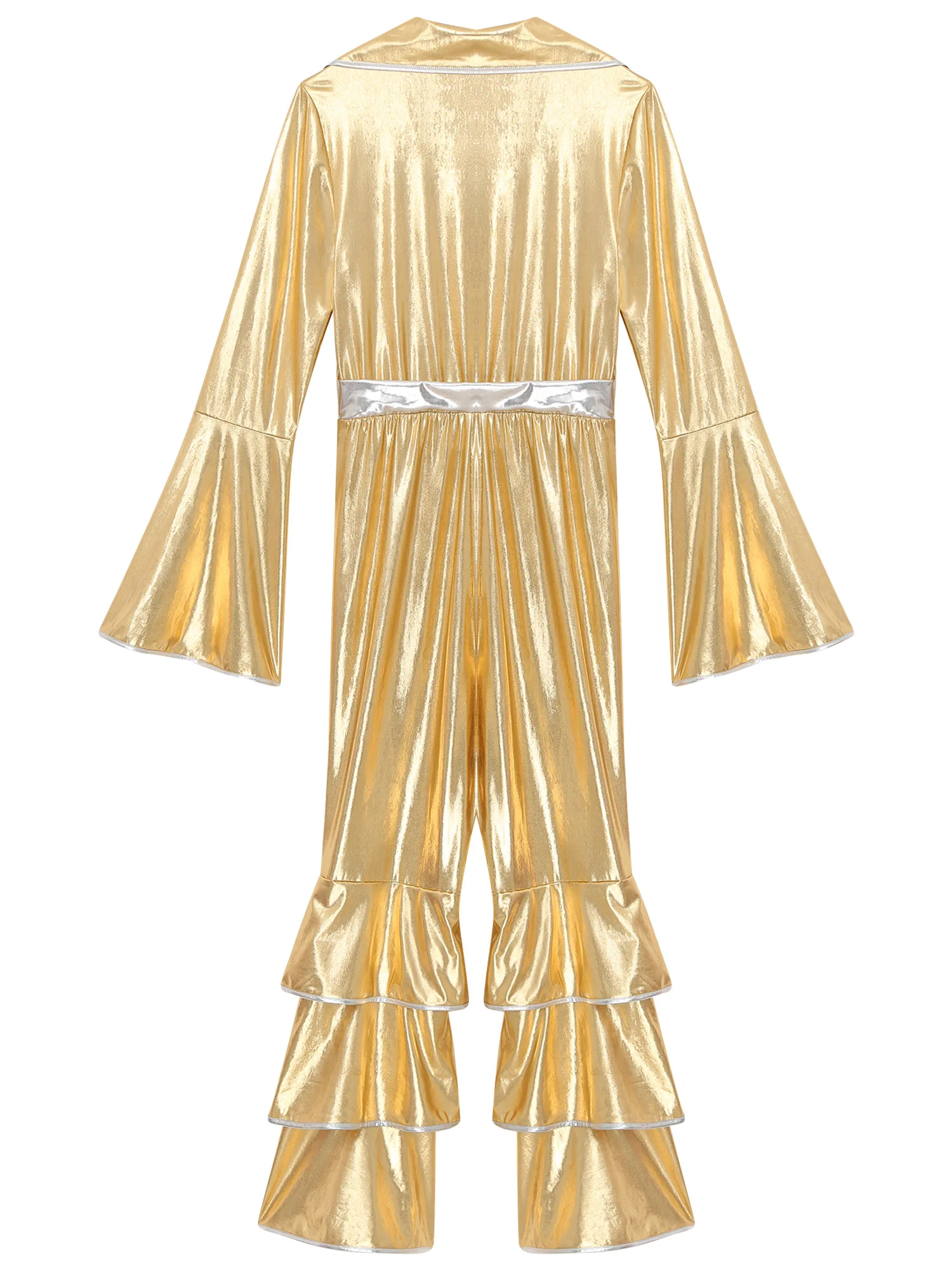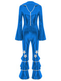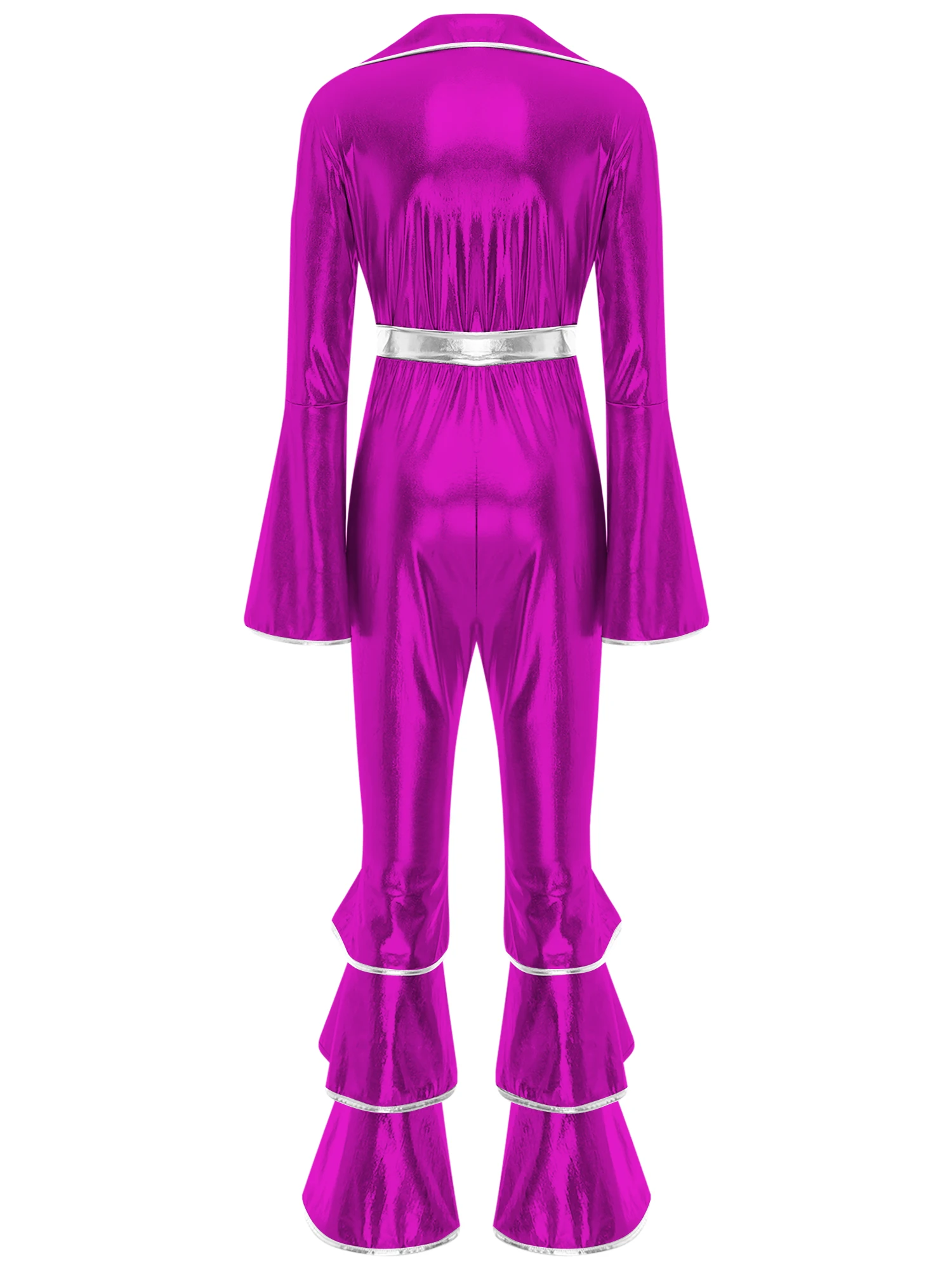 Womens 70s Disco Fever Costume 80s Prom Funky Dancing Sparkle Flare Jumpsuit Halloween Cosplay Party Hippie Fancy Dress Up