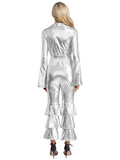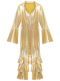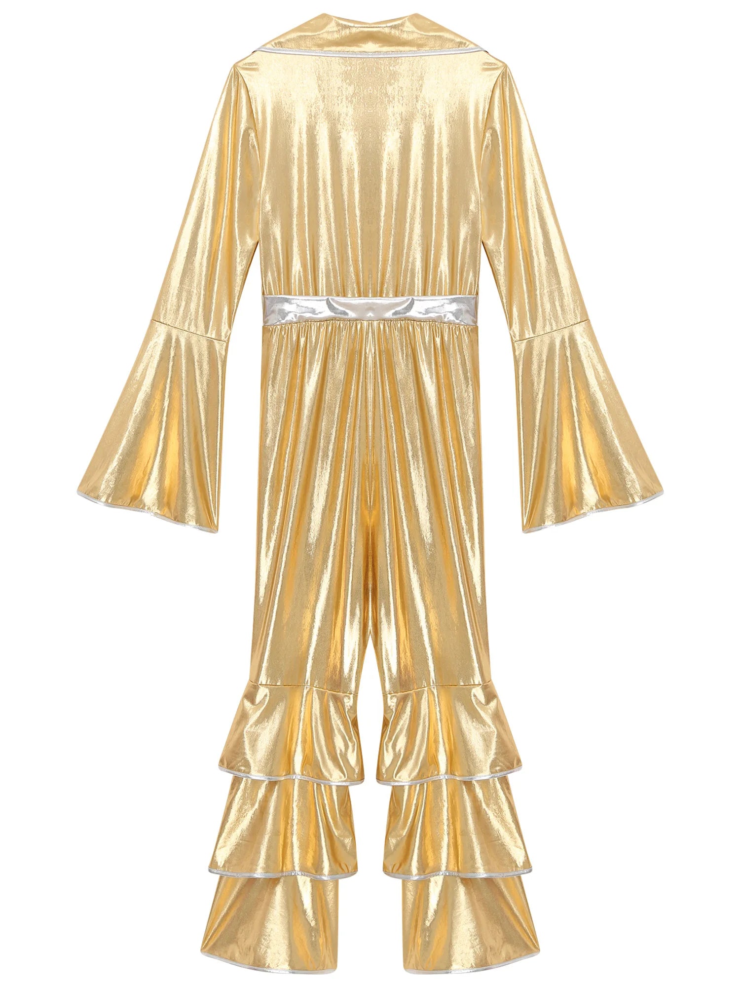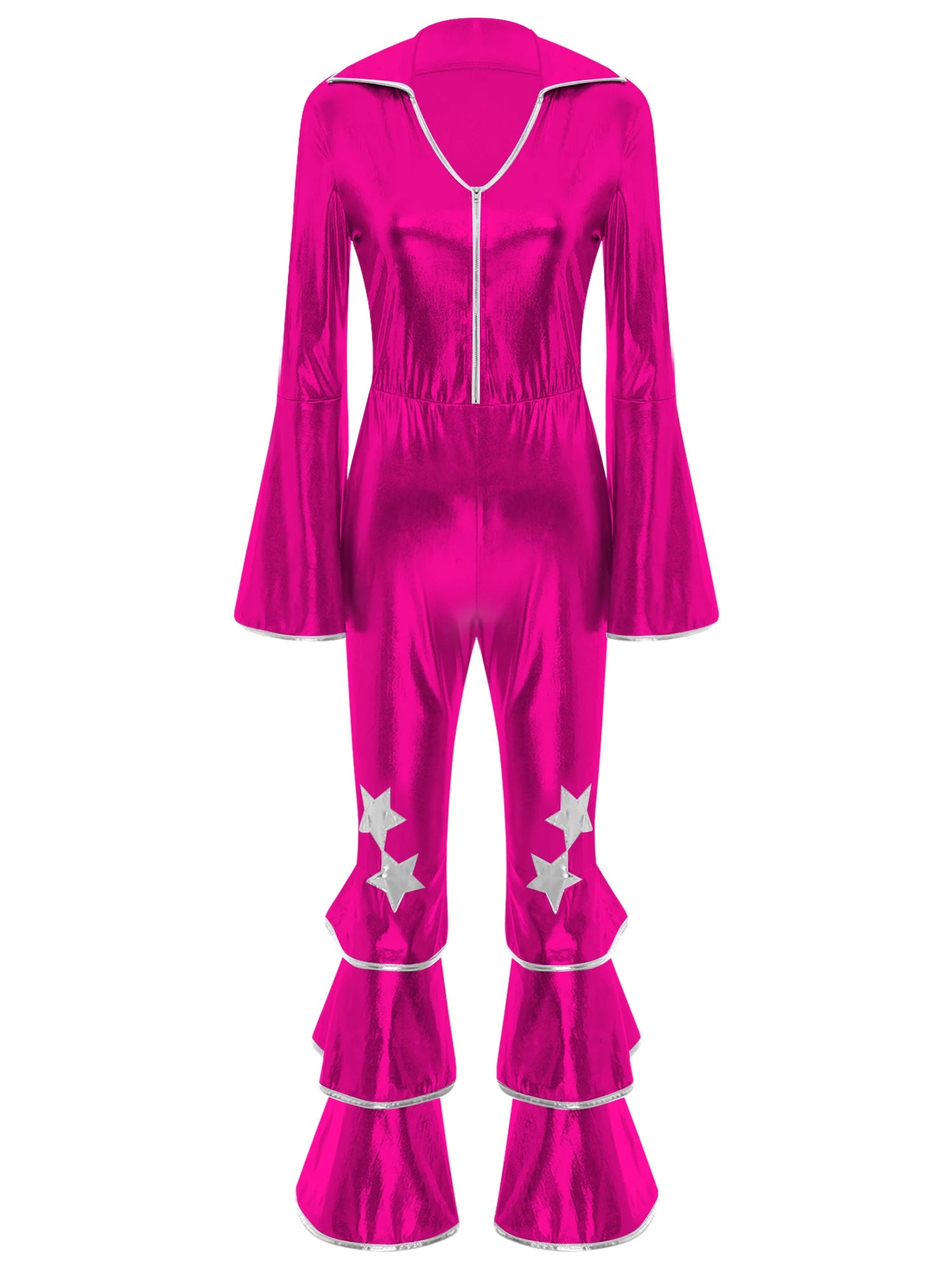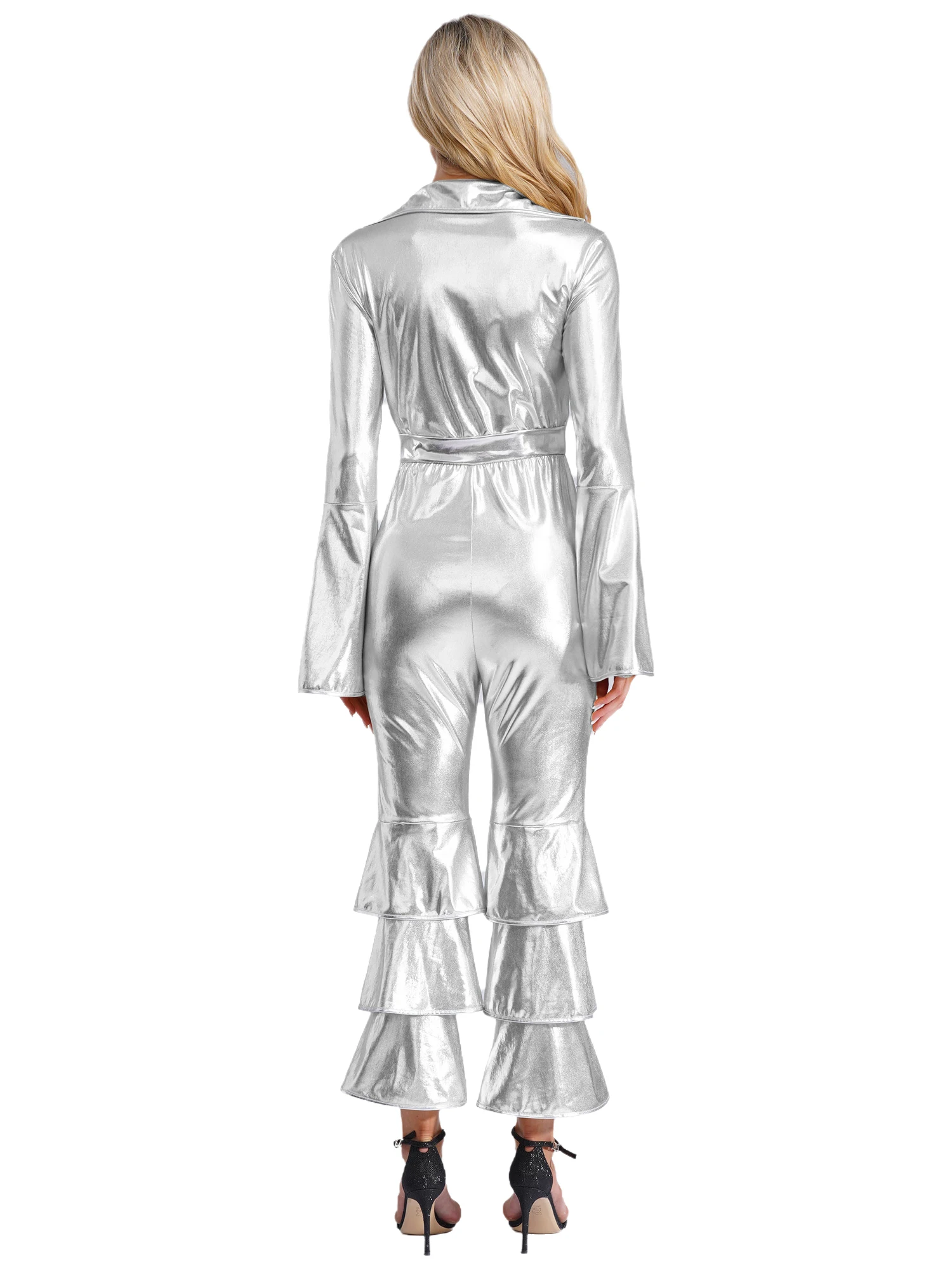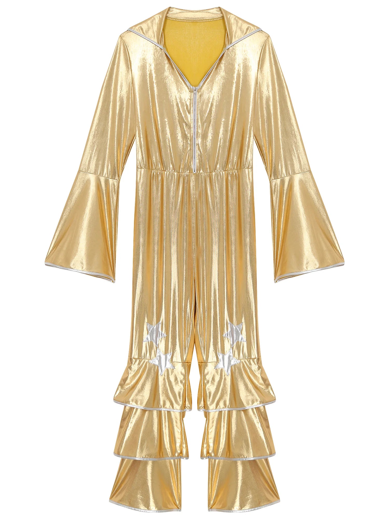A 1970s disco dance costume for women, shiny fabric with metallic sheen makes you more eye-catching at parties.