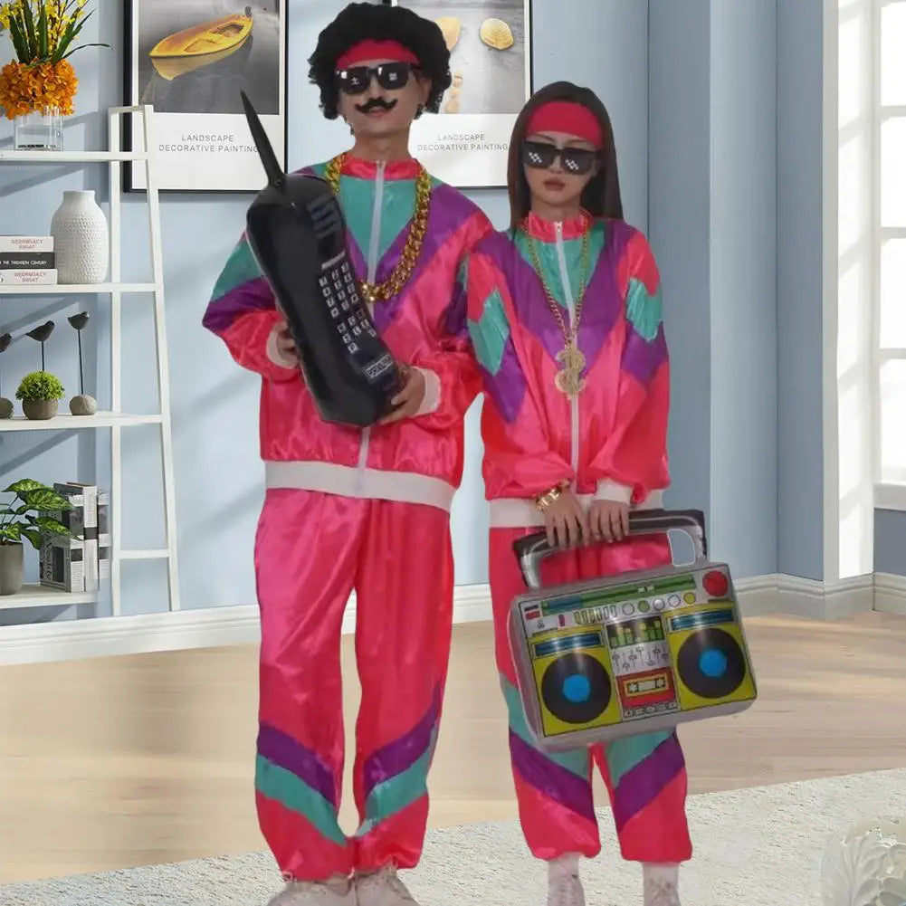 The meticulous design of this hip-hop inspired outfit showcases bright colors and simple yet eye-catching patterns that stay true to the iconic 80s aesthetic. Perfect for everyday wear, fitness activities, running, ball sports, hip-hop parties, disco nights, retro-themed events, masquerades, and even Halloween celebrations.