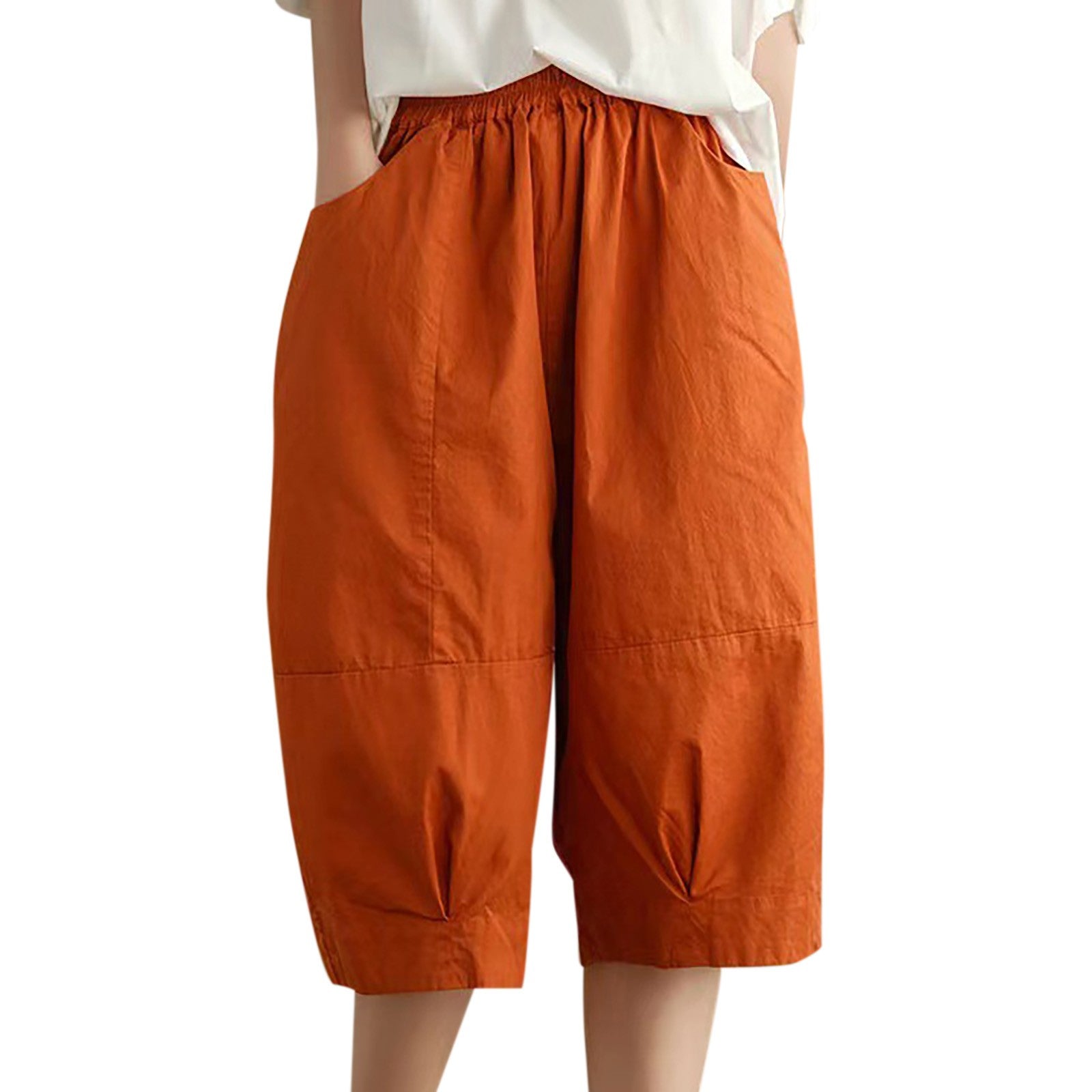 Elastic Breathable Loose Cotton And Linen Half Length Pants Pant Womens Shorts With Pocket