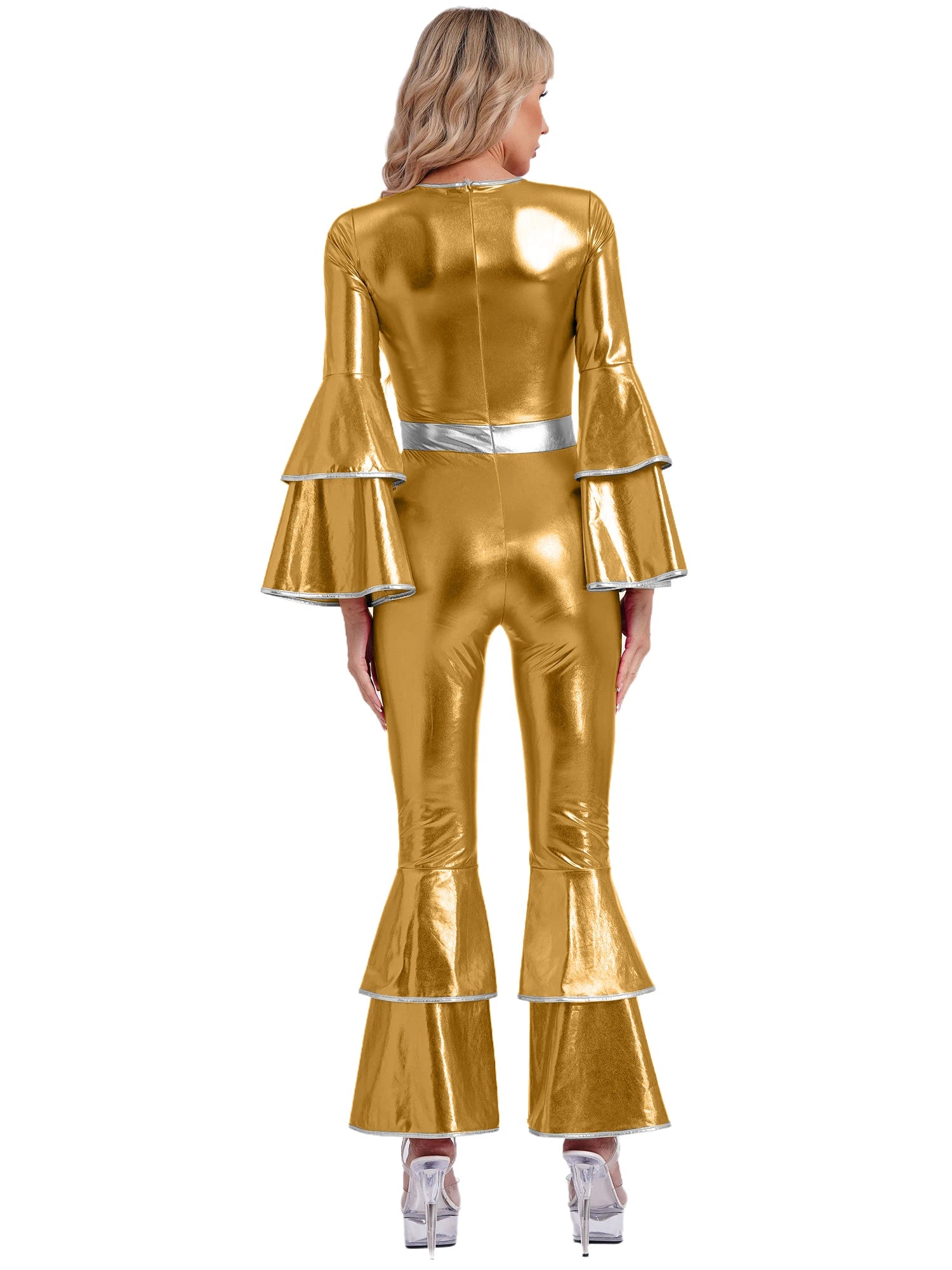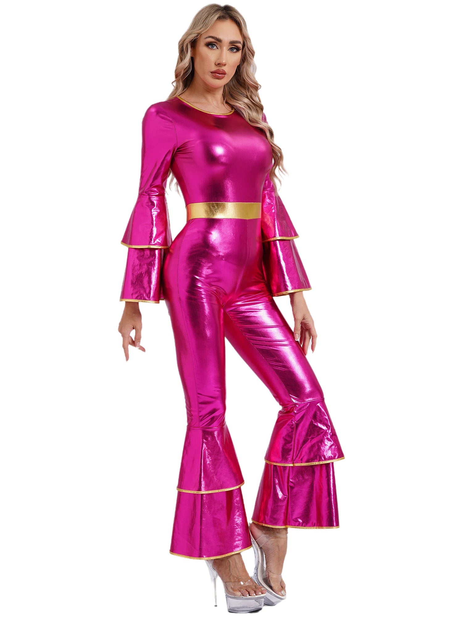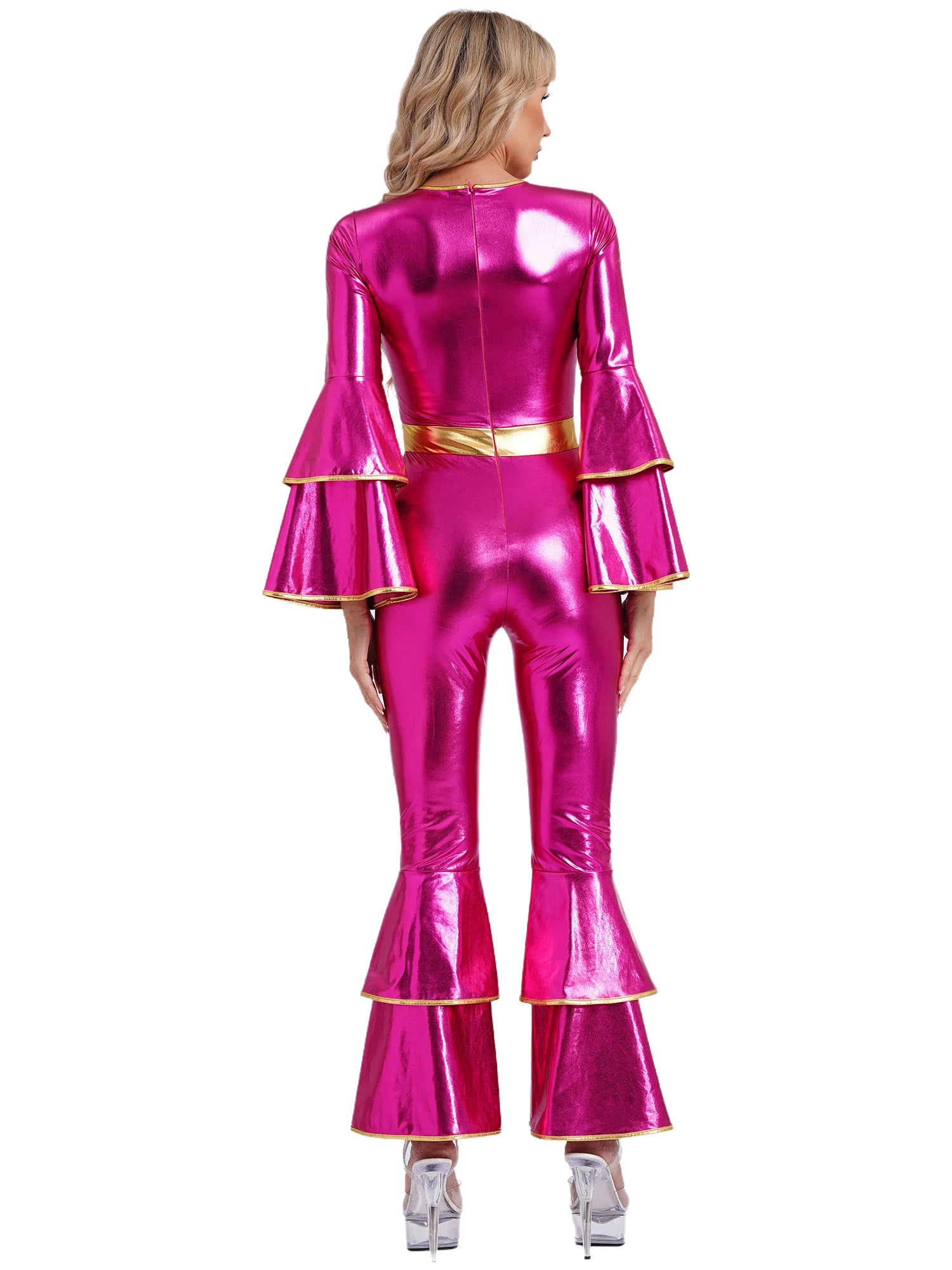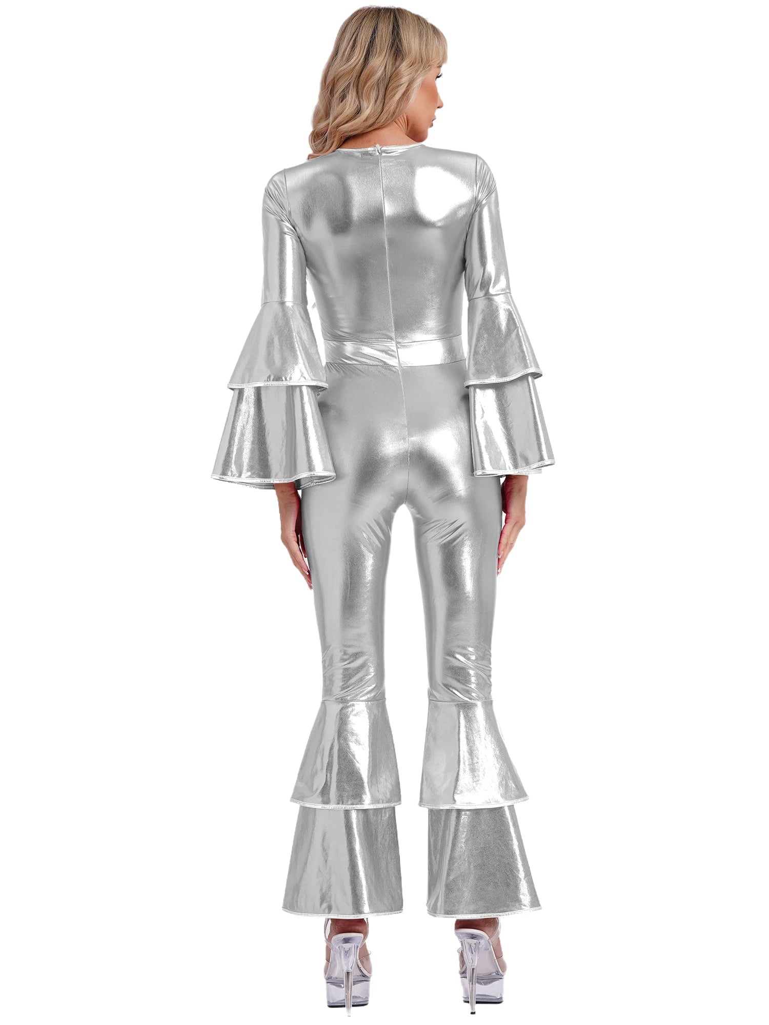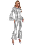 Womens Disco Costumes | Sexy Shiny Metallic Retro Dance Jumpsuit | 70s 80s Hippie Dress