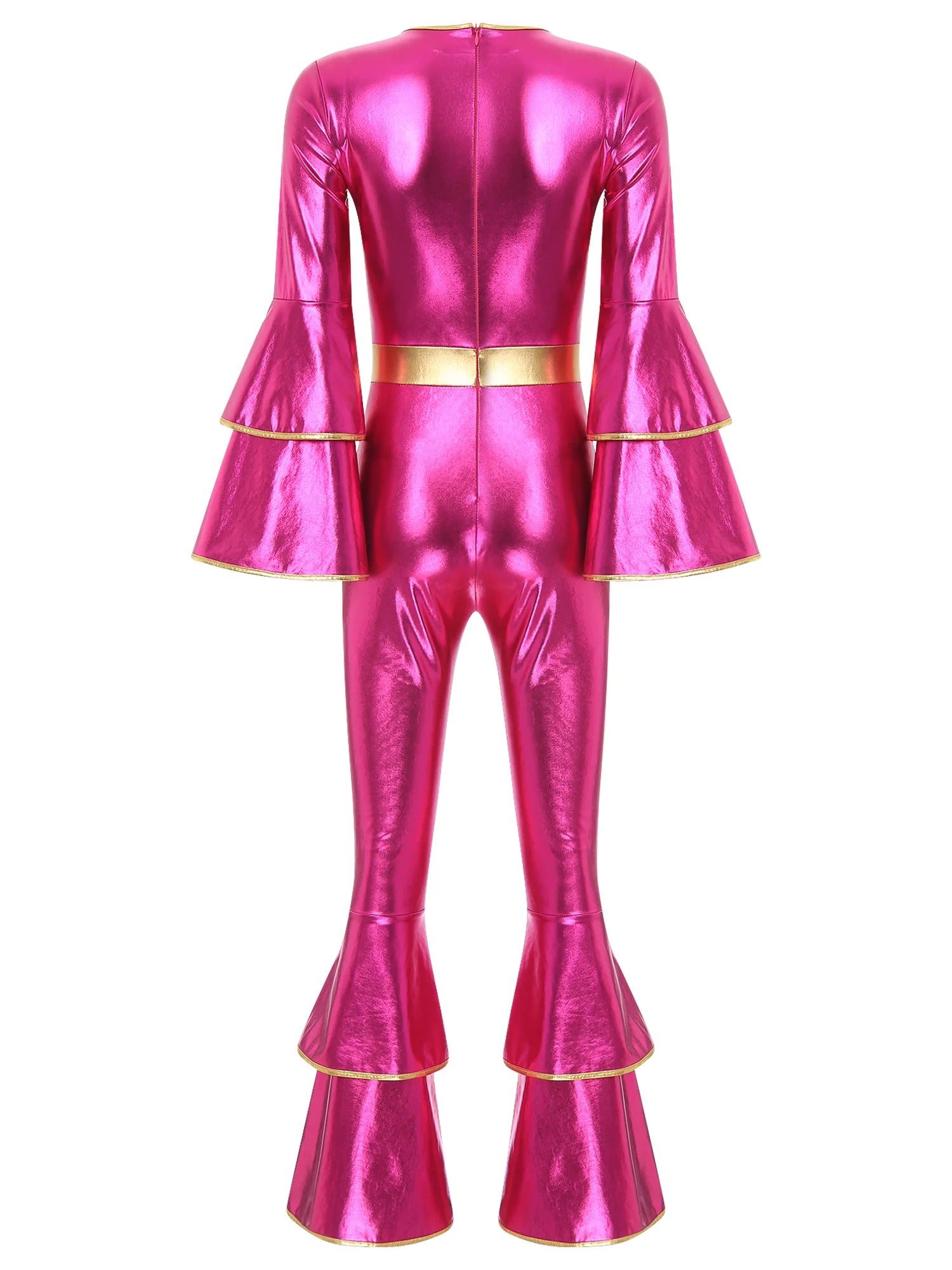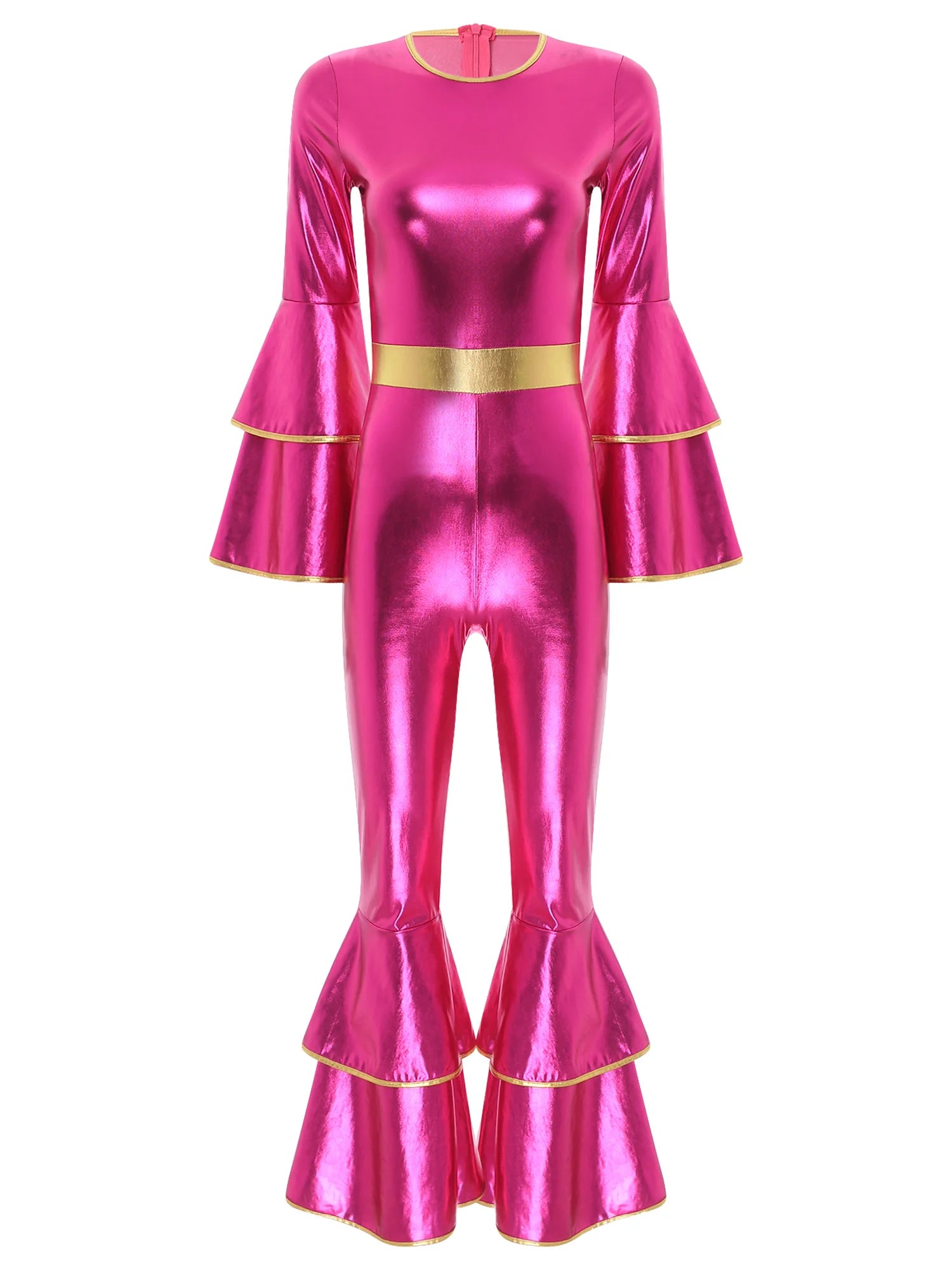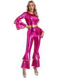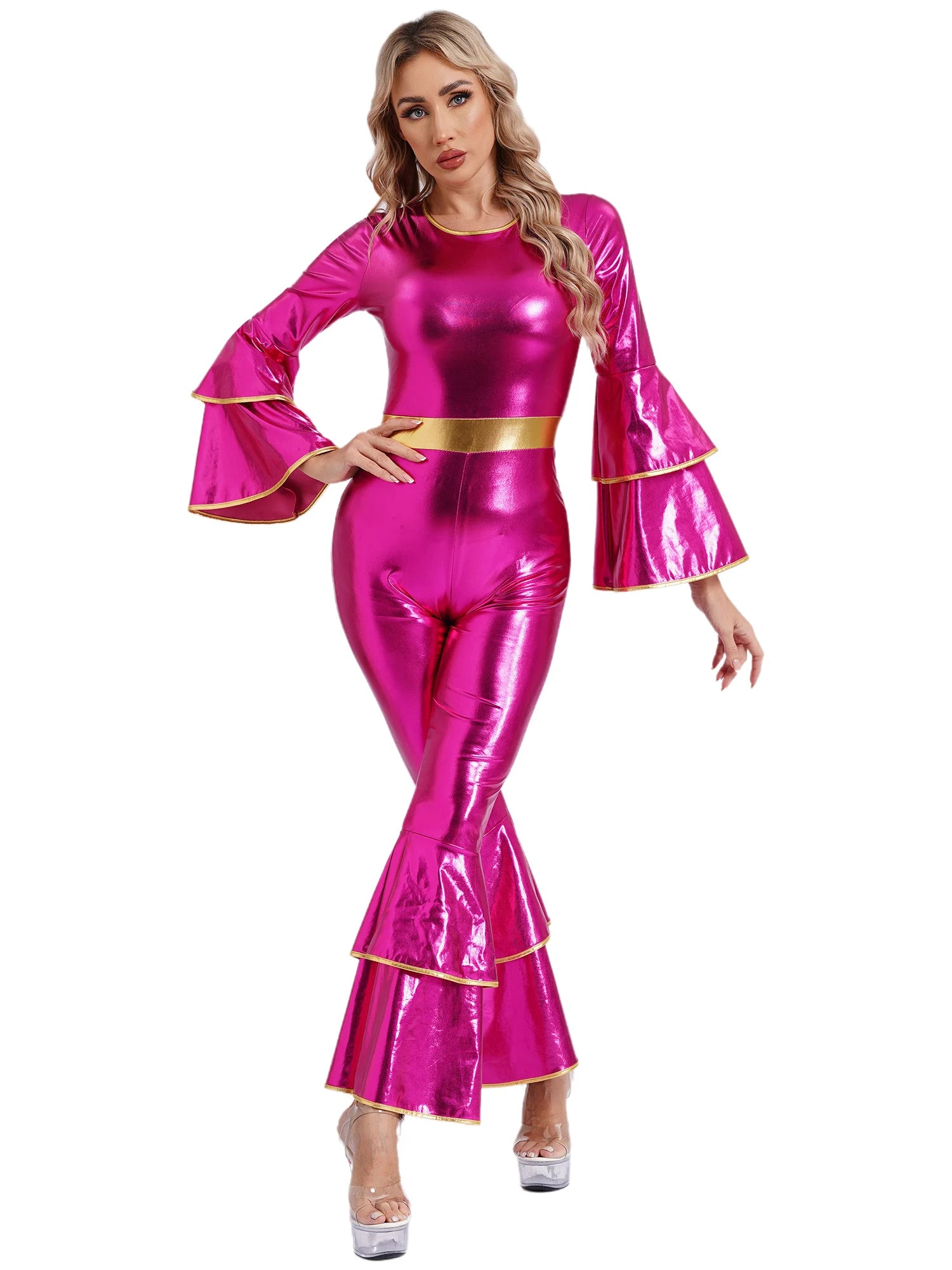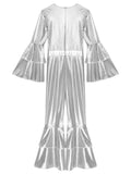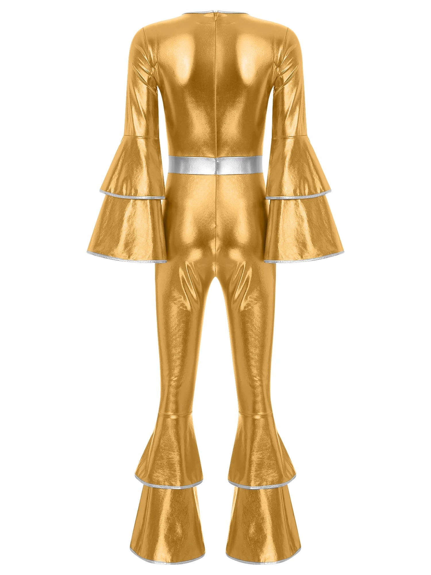 Womens Disco Costumes | Sexy Shiny Metallic Retro Dance Jumpsuit | 70s 80s Hippie Dress