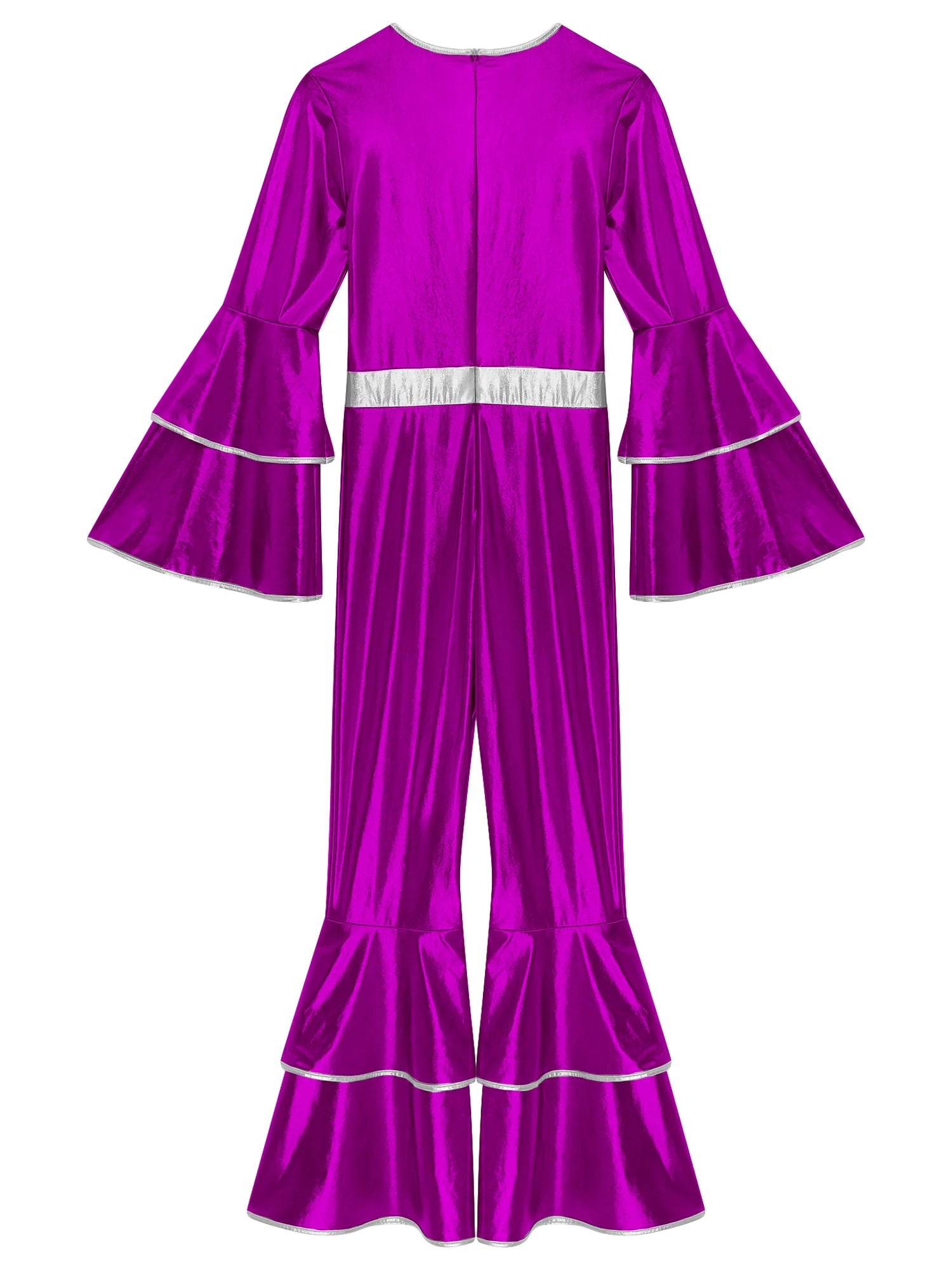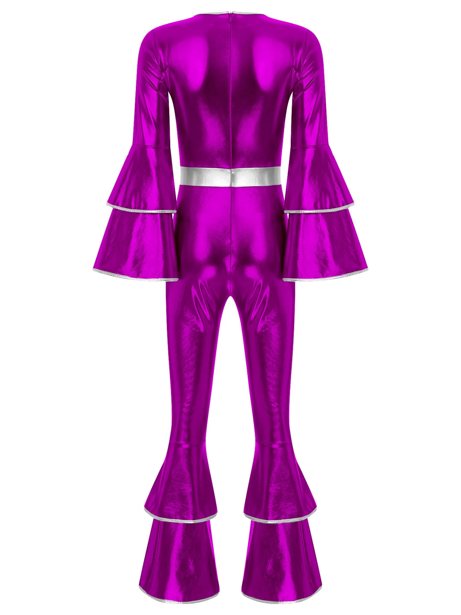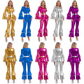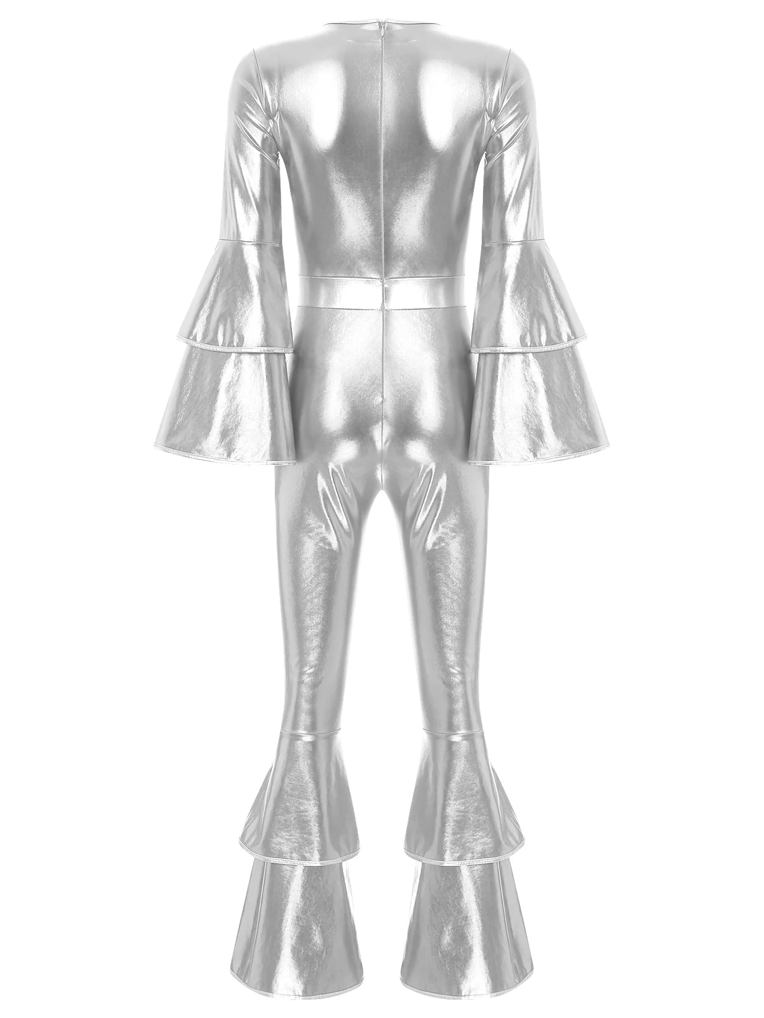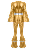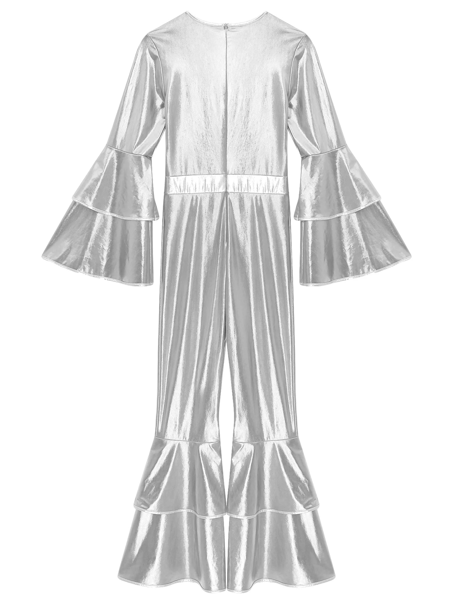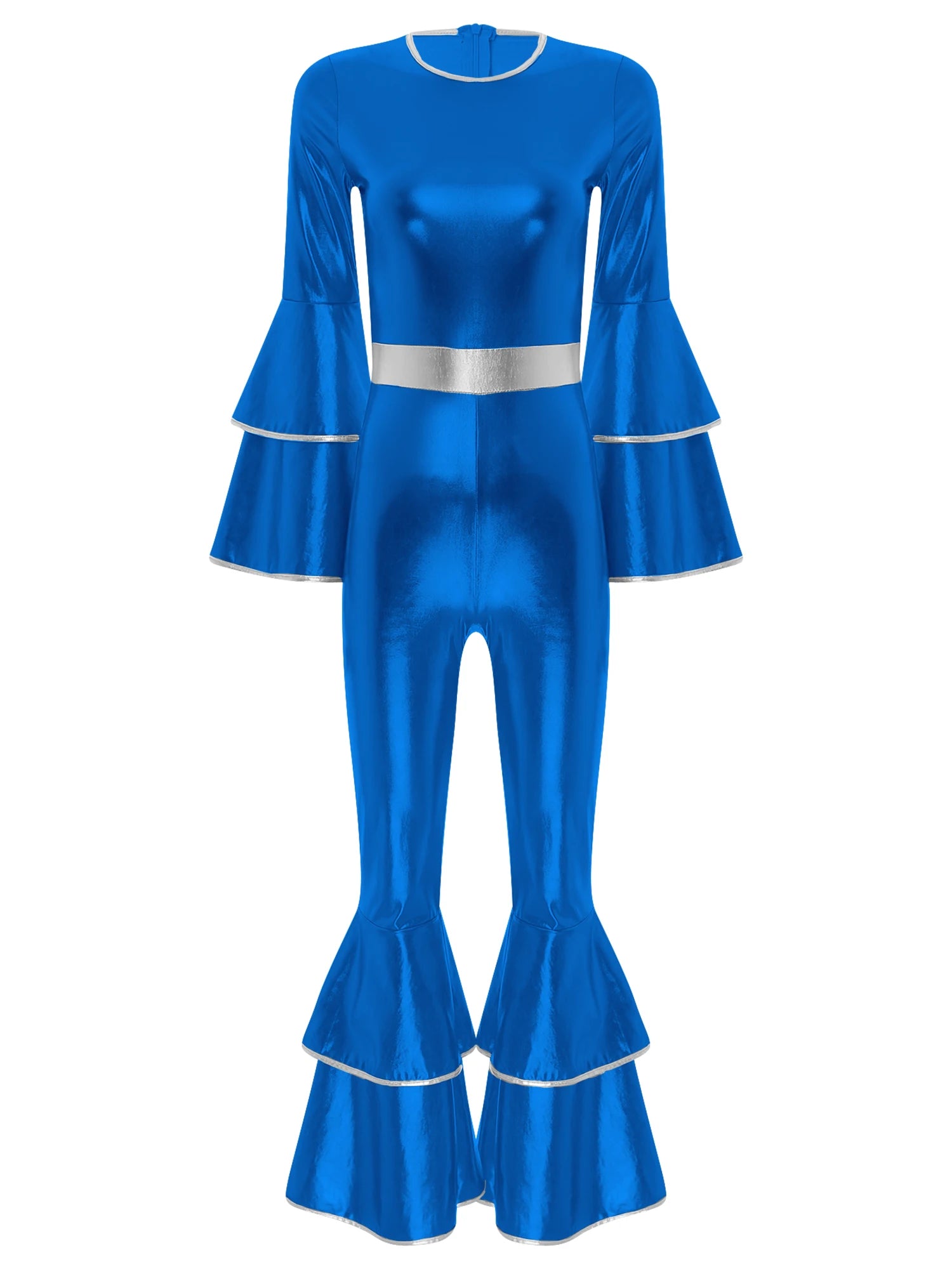 Womens Disco Costumes | Sexy Shiny Metallic Retro Dance Jumpsuit | 70s 80s Hippie Dress