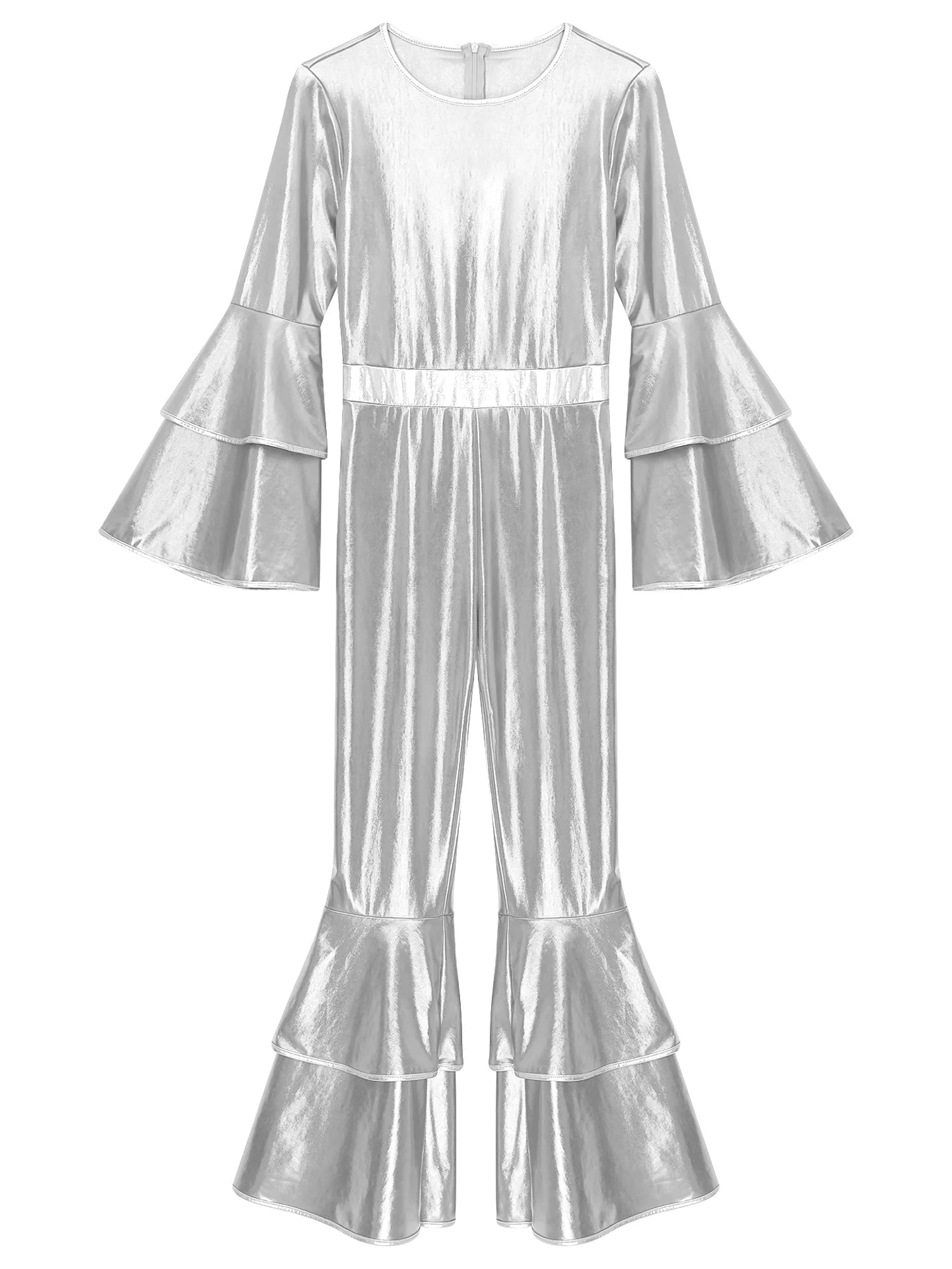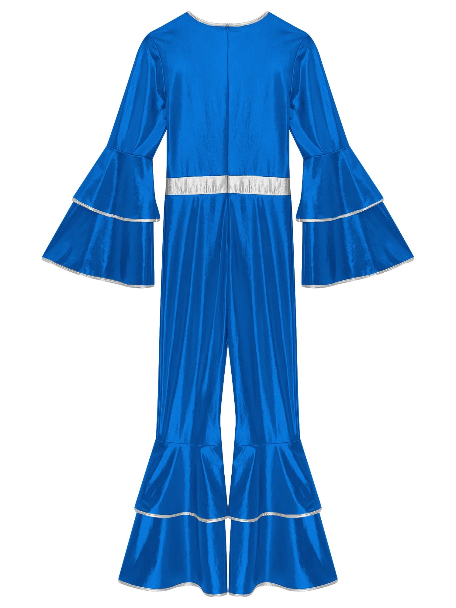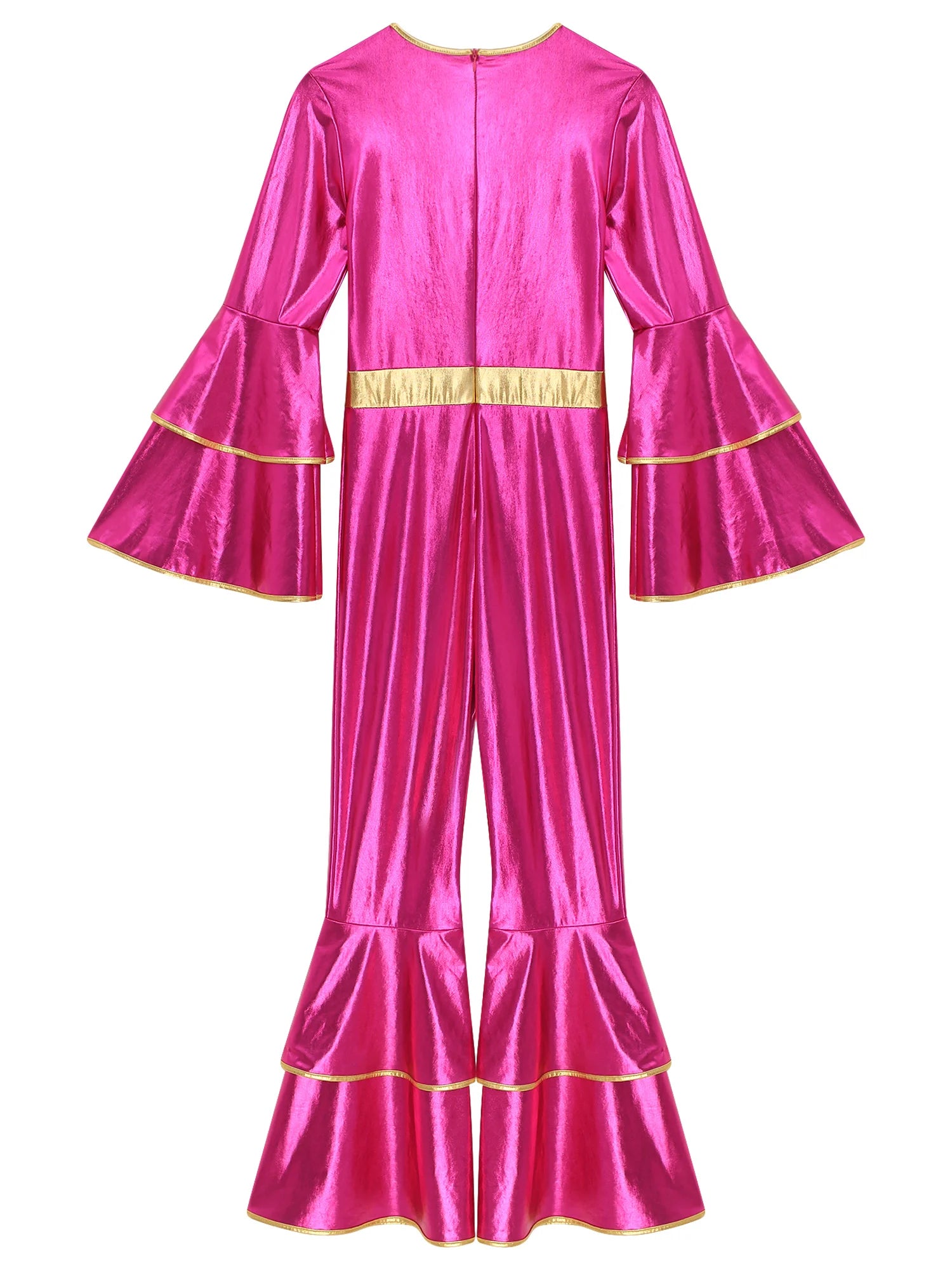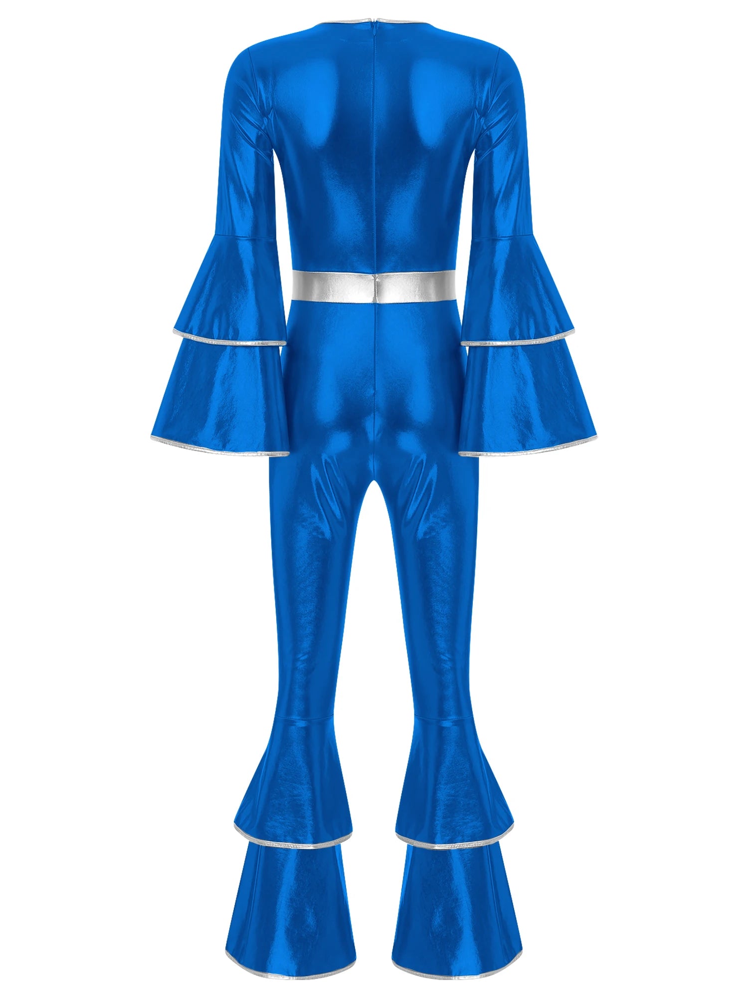 Womens Disco Costumes | Sexy Shiny Metallic Retro Dance Jumpsuit | 70s 80s Hippie Dress