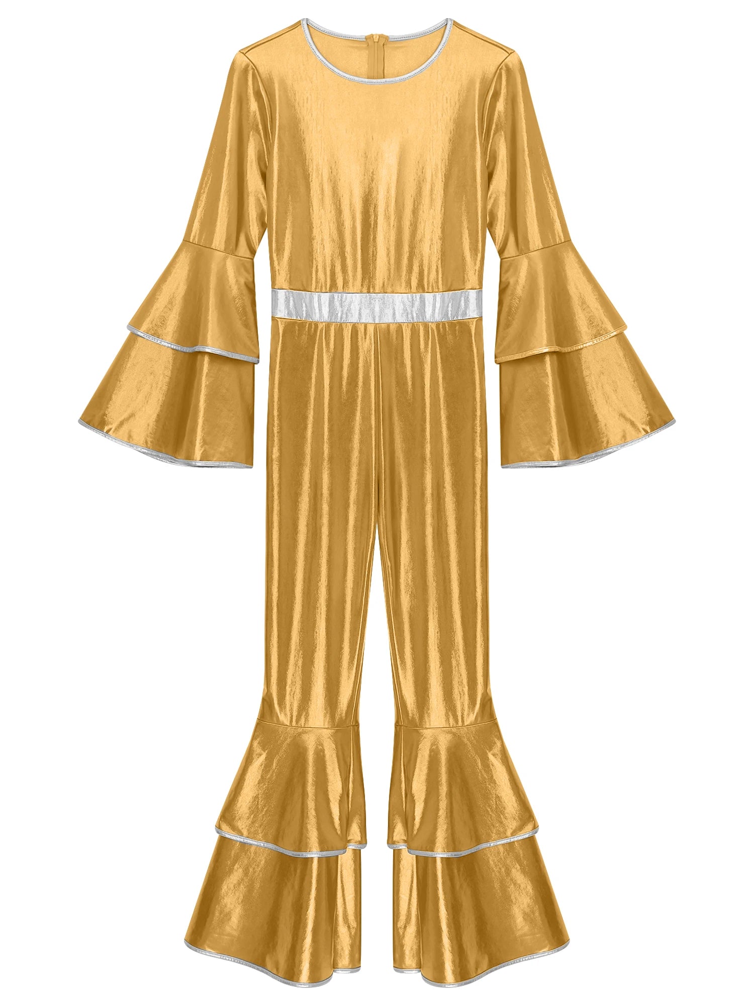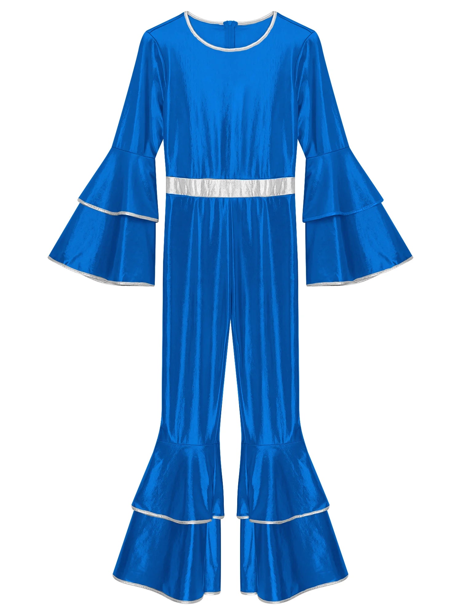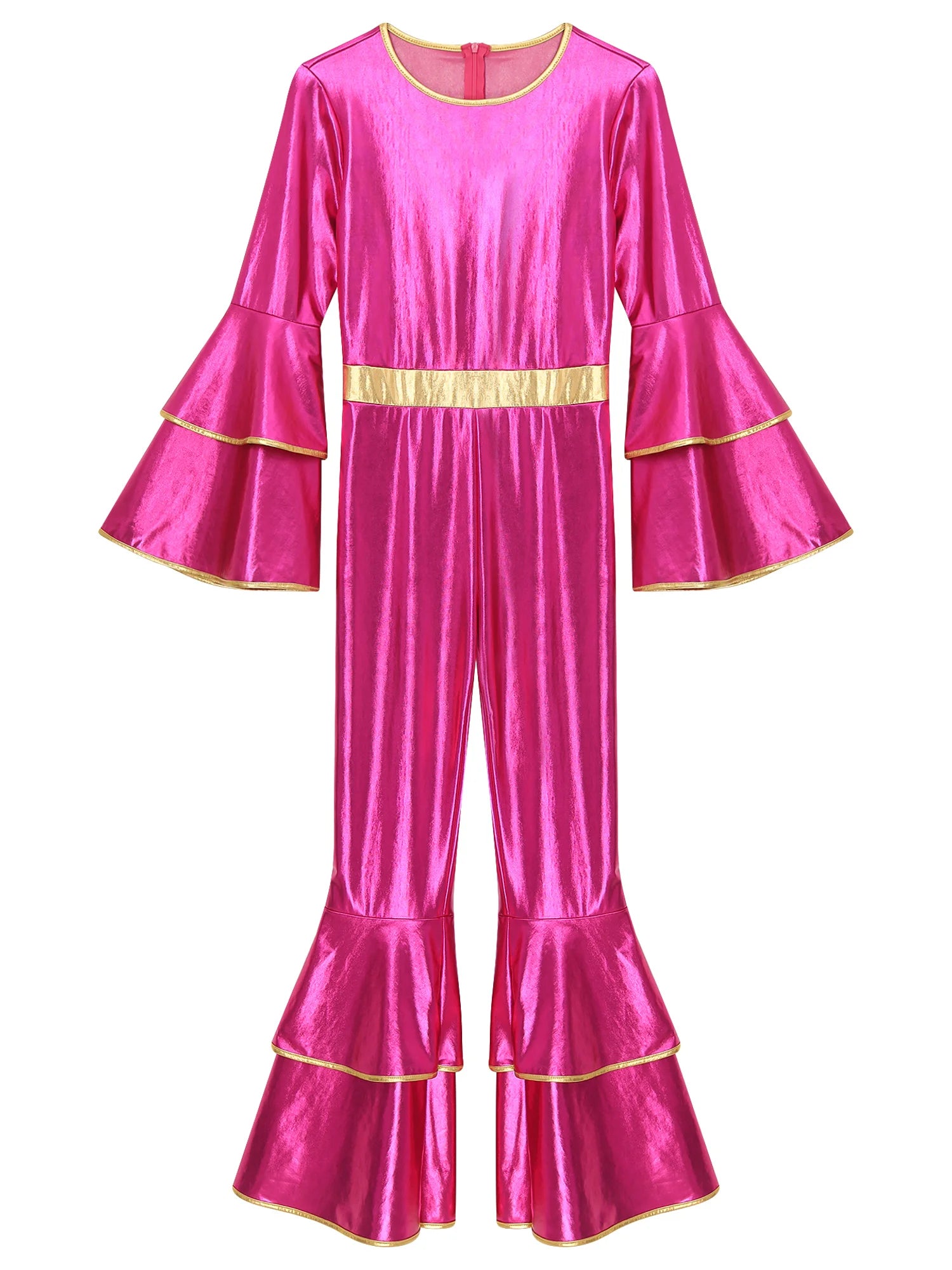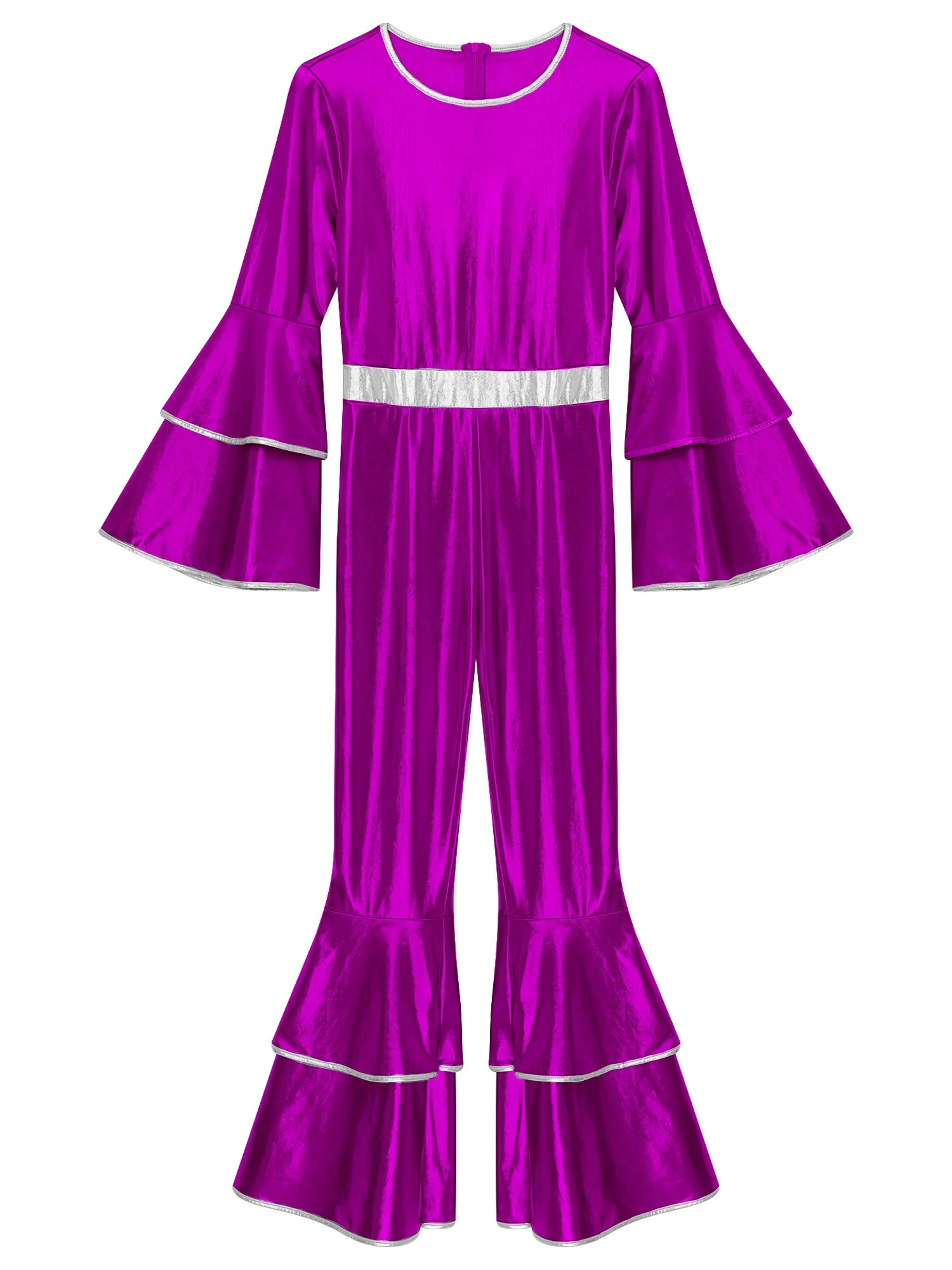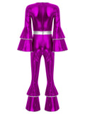 Womens Disco Costumes | Sexy Shiny Metallic Retro Dance Jumpsuit | 70s 80s Hippie Dress
