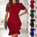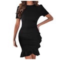 Women's Ruched Summer Crew Neck Ruffle Short Sleeve Mini Bodycon Dress