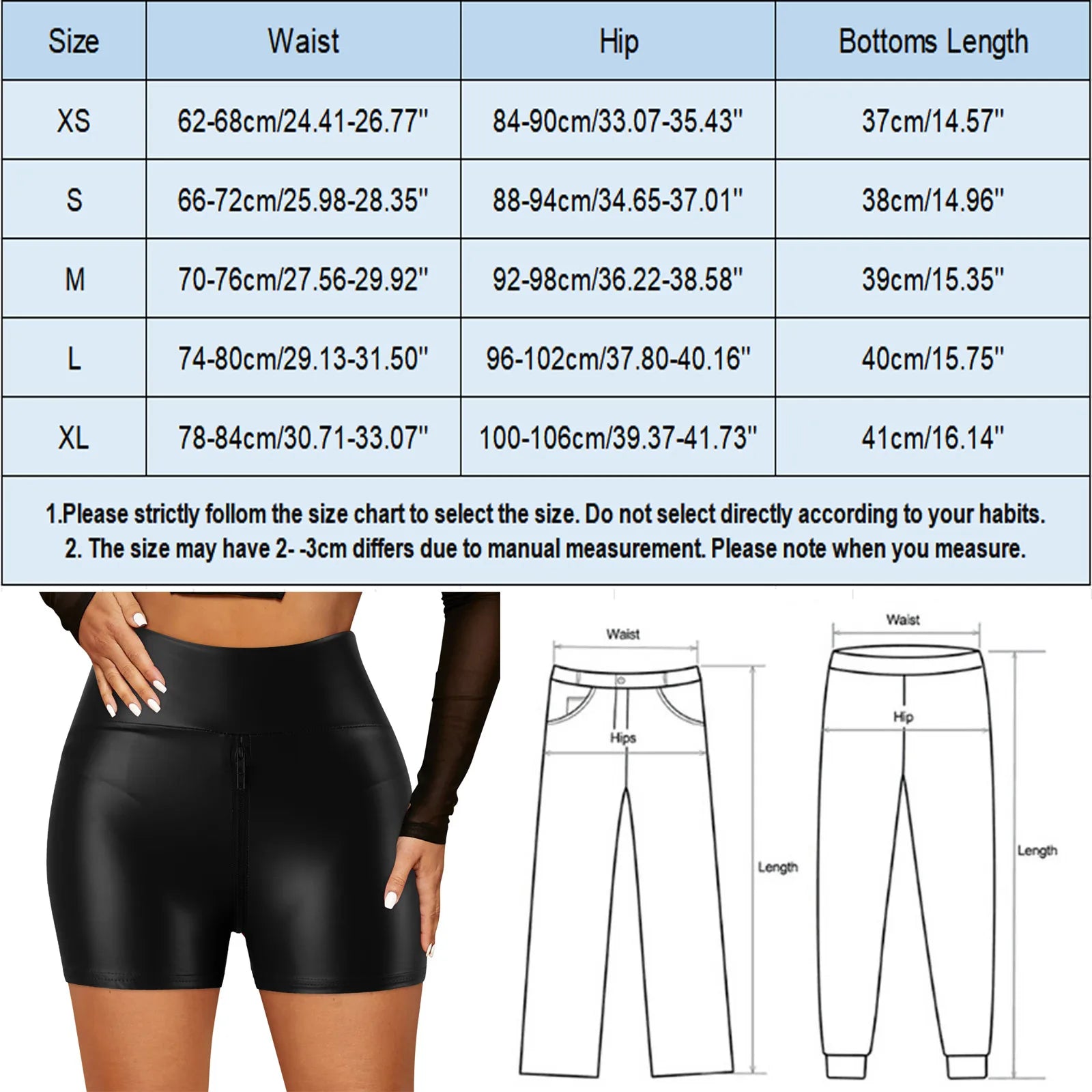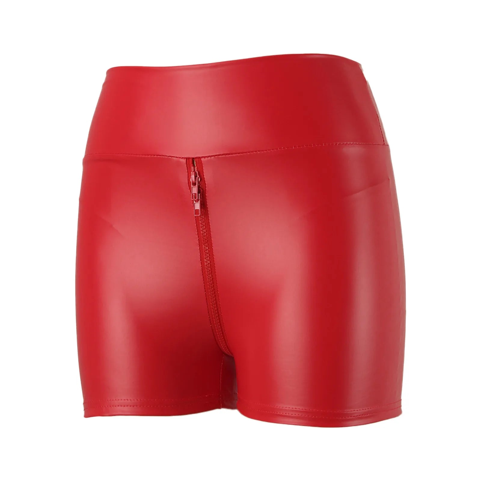 Faux Pants Leggings Stretch Waisted Womens High Leather Pleather Pants Zip Open Crotch Short Pants