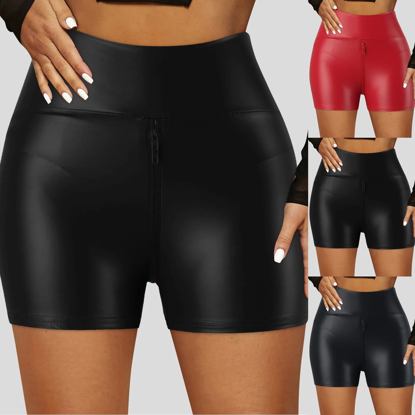 Women's Sexy High Waist PU Leather Shorts with Zipper and Butt Lift Design