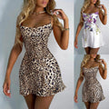 Women's Sexy Leopard Floral Print Bodycon Mini Dress