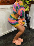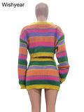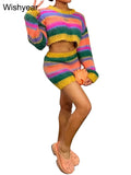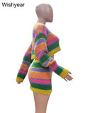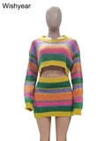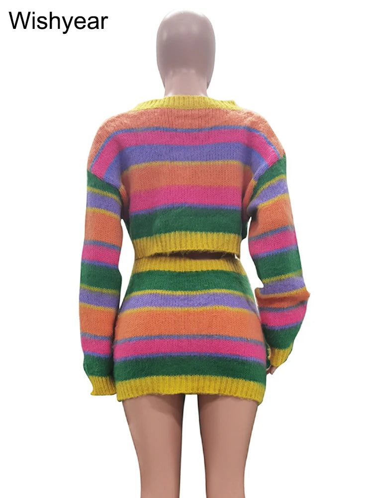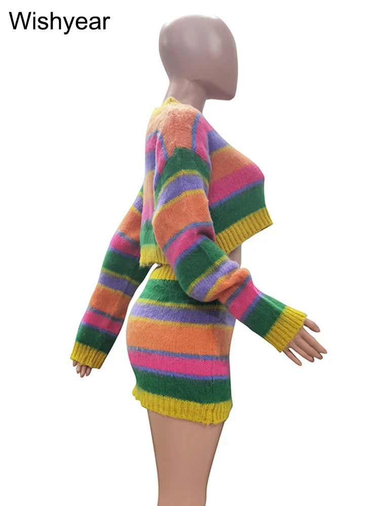 Women's Striped Knitting 2-Piece Set | Colorful Patchwork Long Sleeve Crop Top And Bodycon Skirt