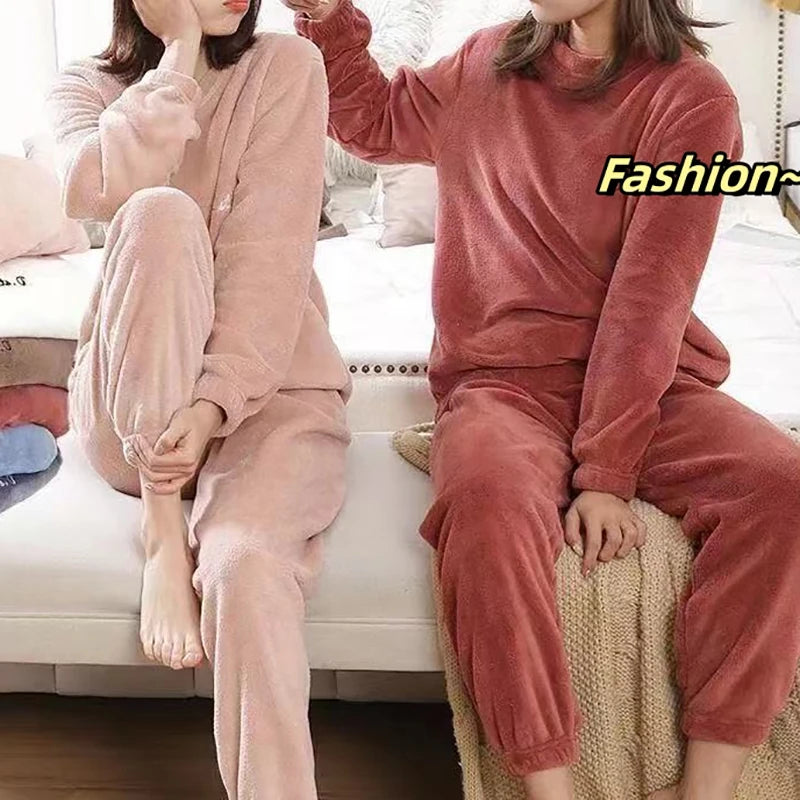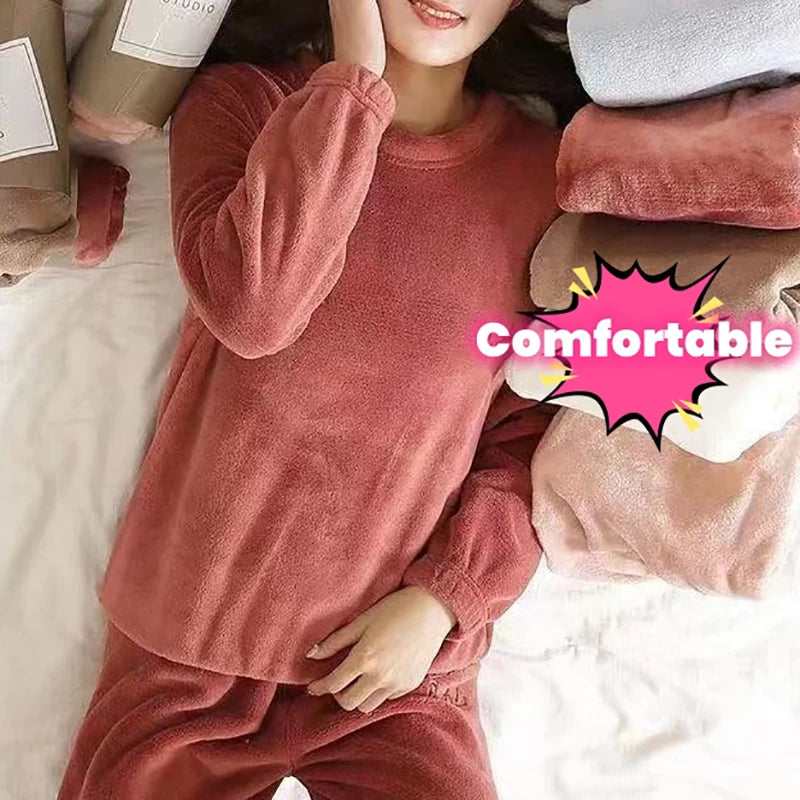 Women's Velvet Pajama Set – Warm Fleece Loungewear with Loose Top
