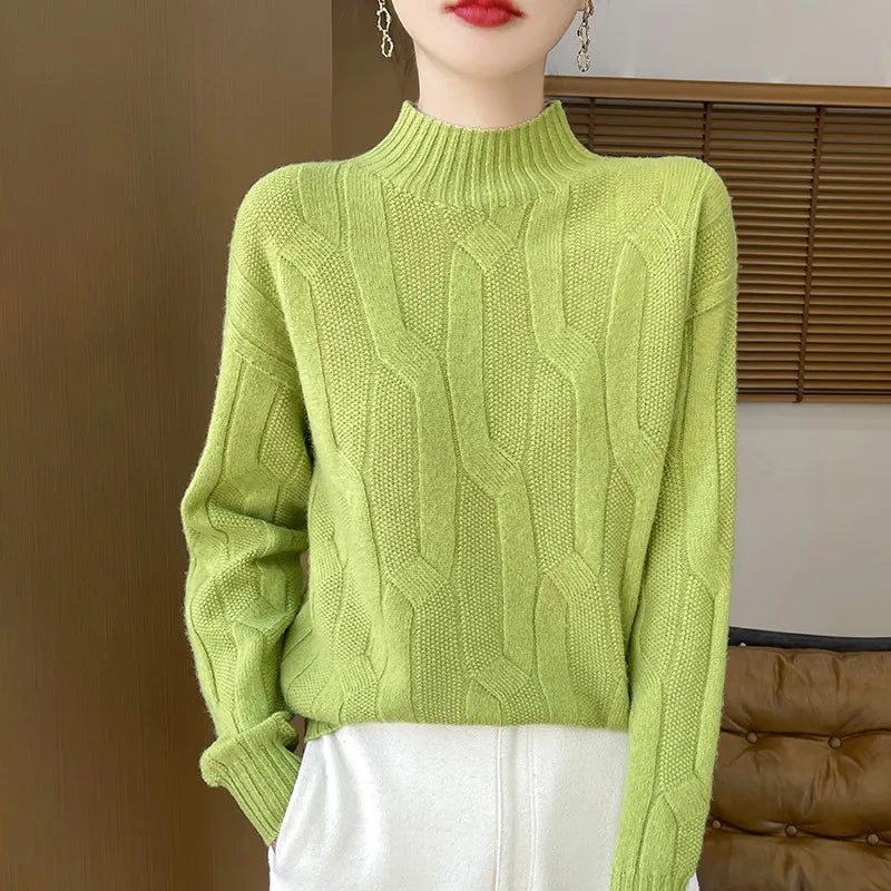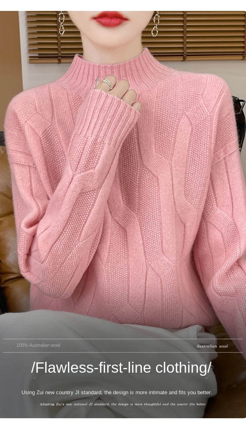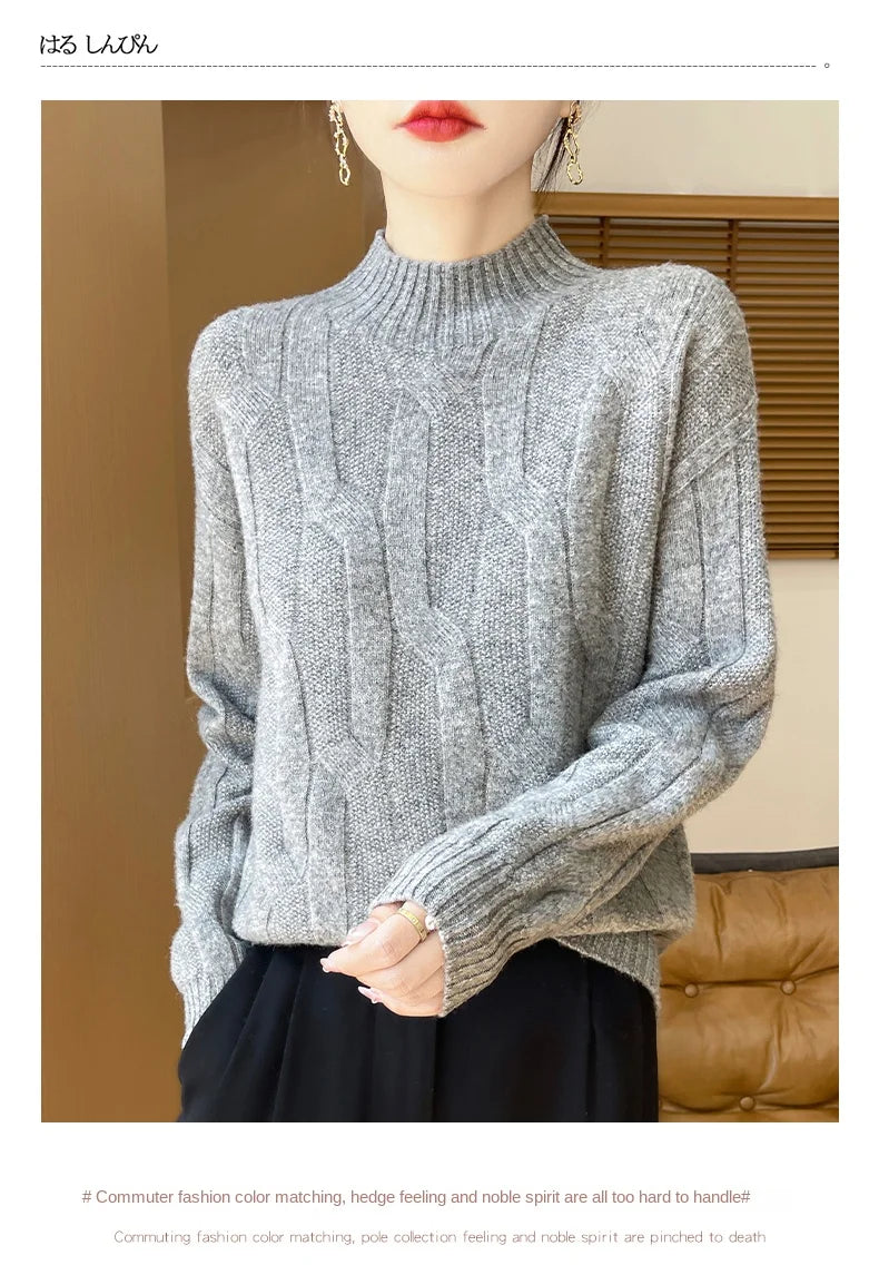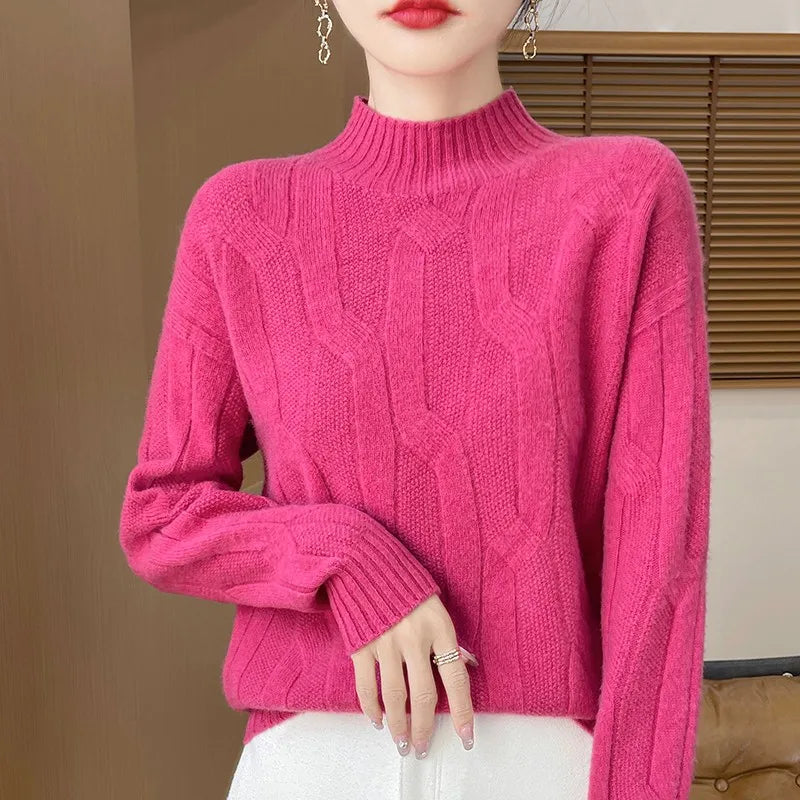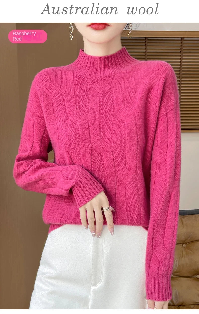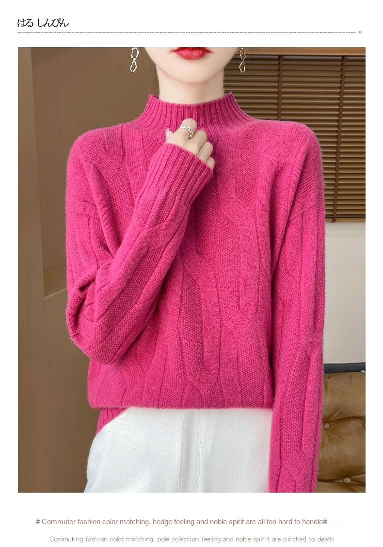 New Fashion Winter Merino Wool Pullover Sweater | Solid Color Long Sleeve