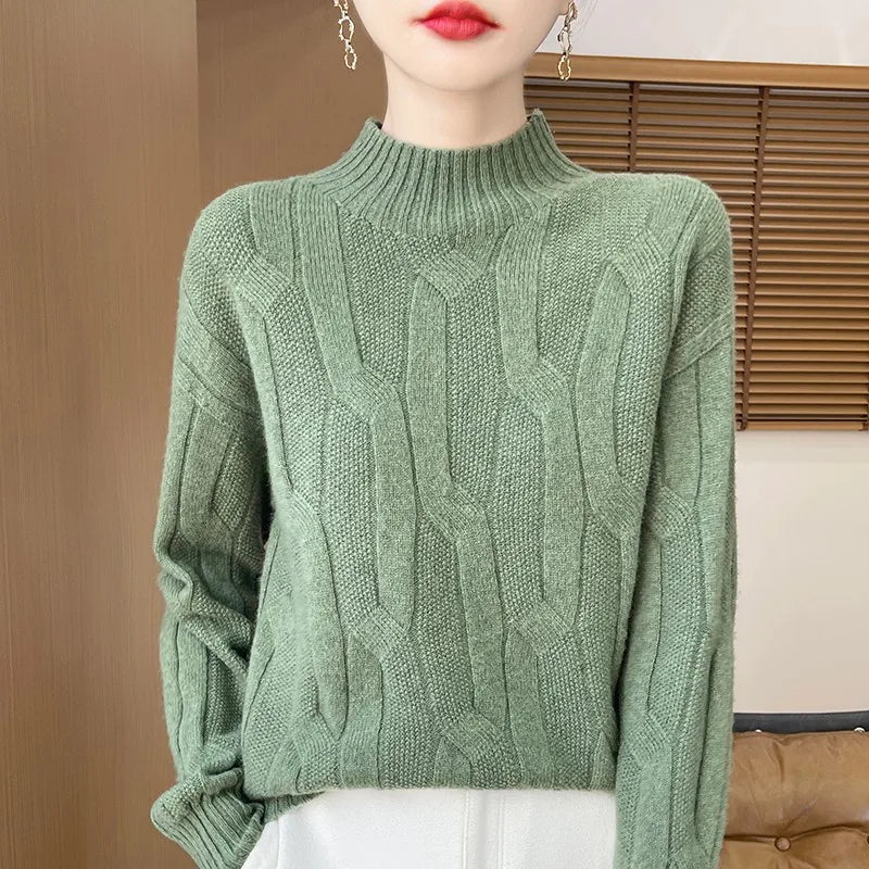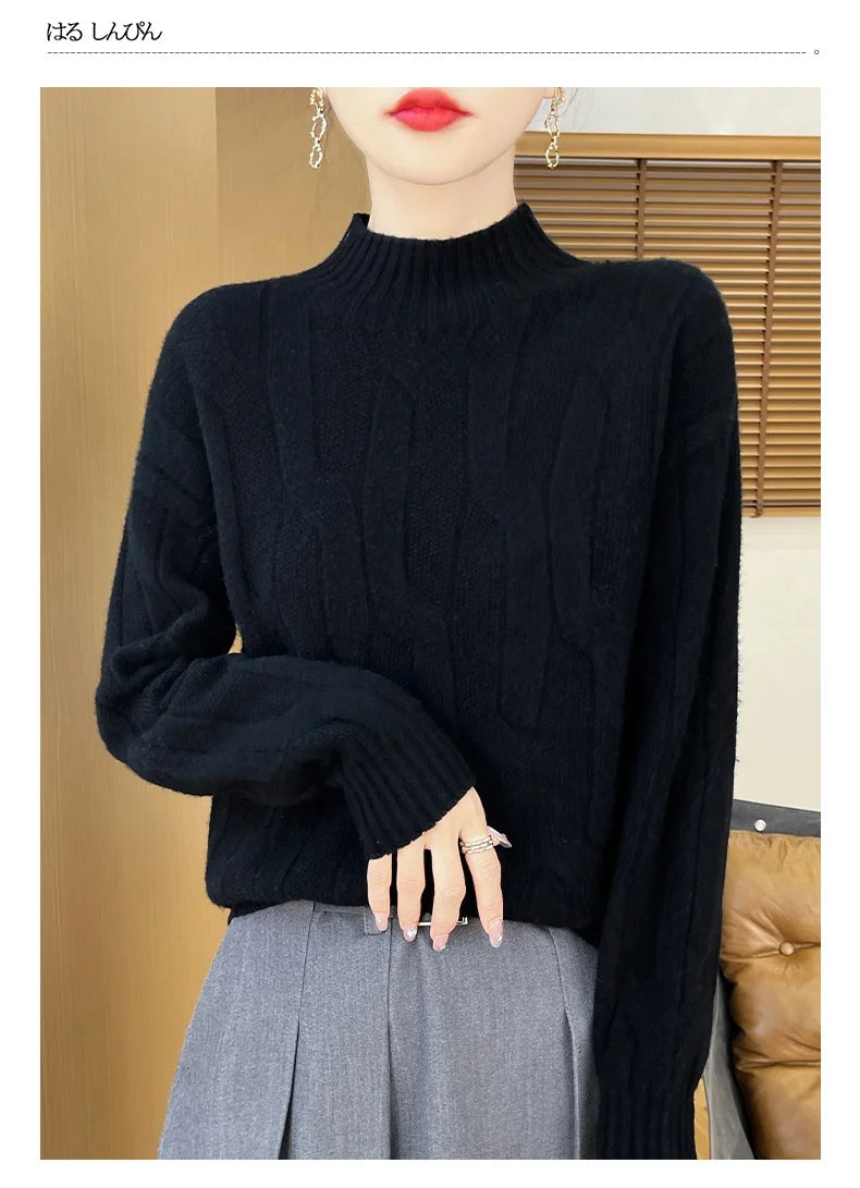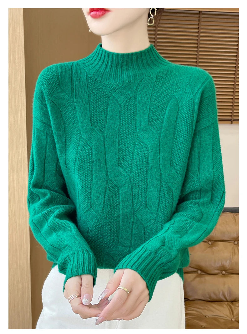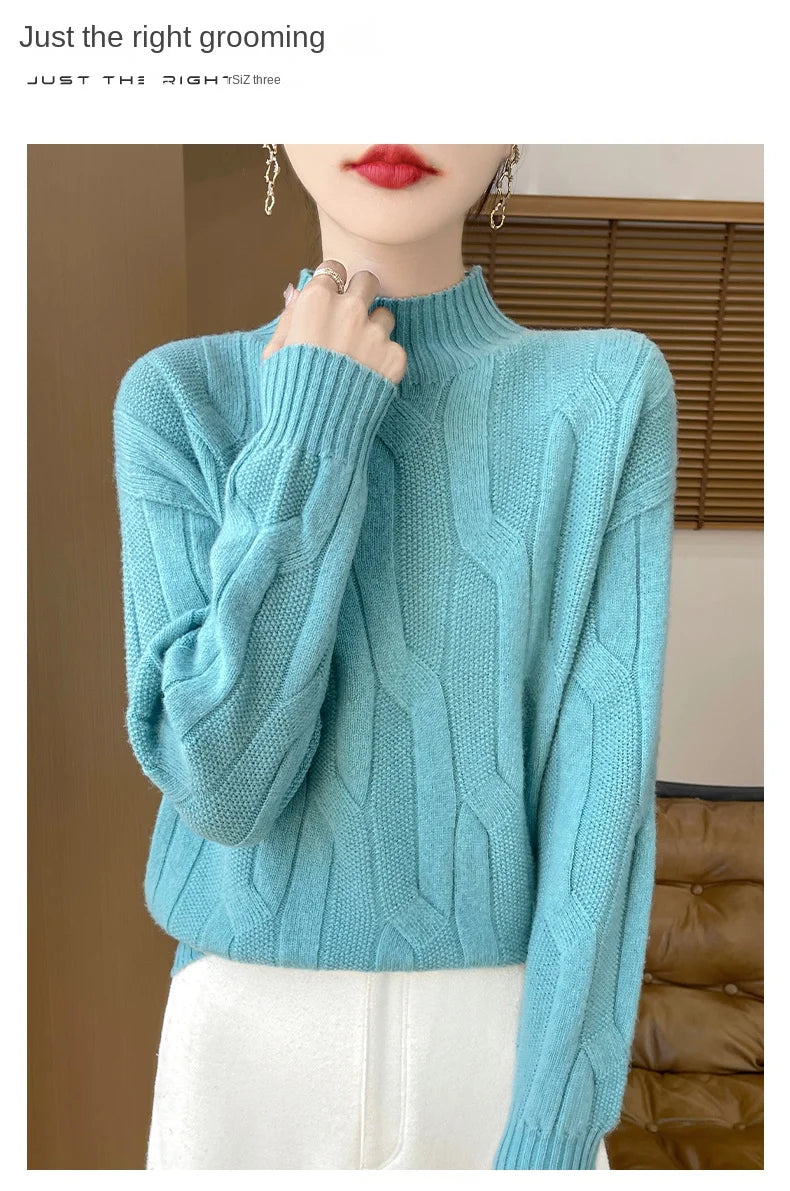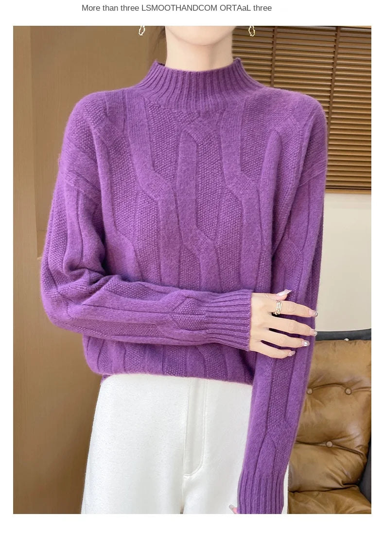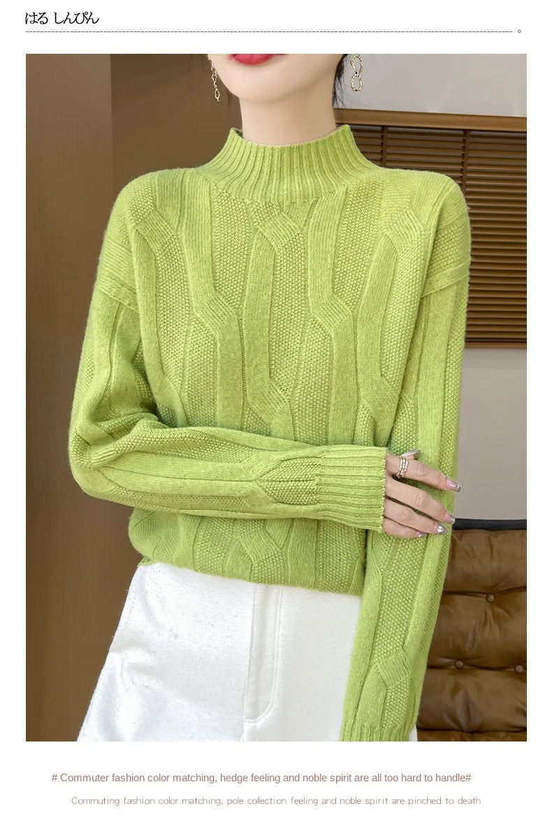 New Fashion Winter Merino Wool Pullover Sweater | Solid Color Long Sleeve