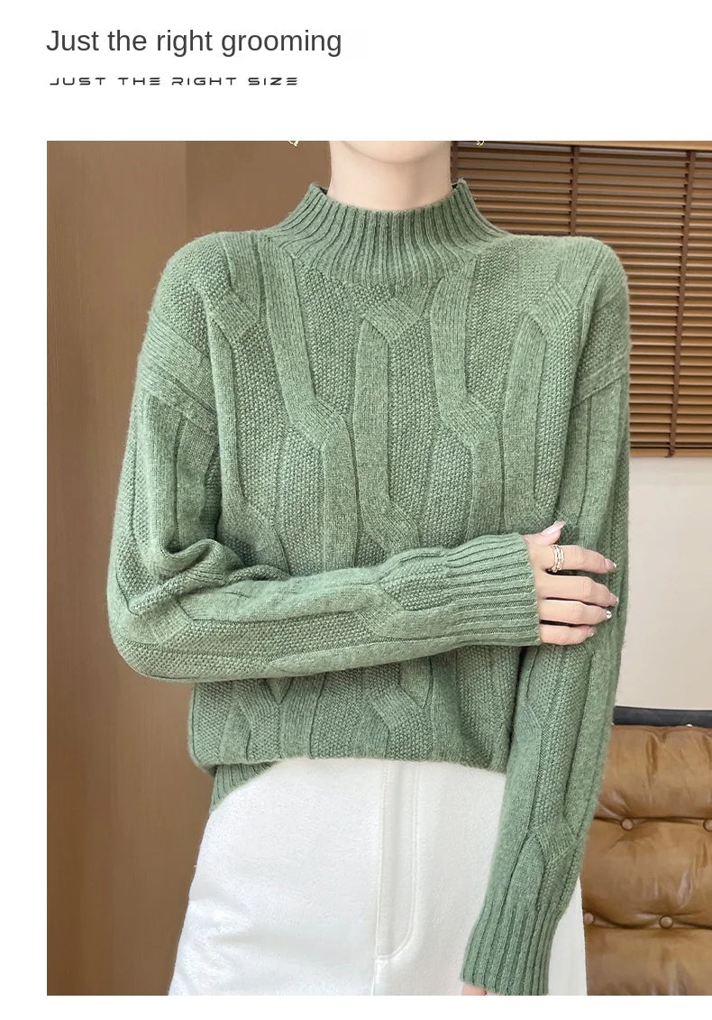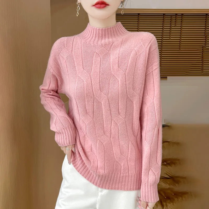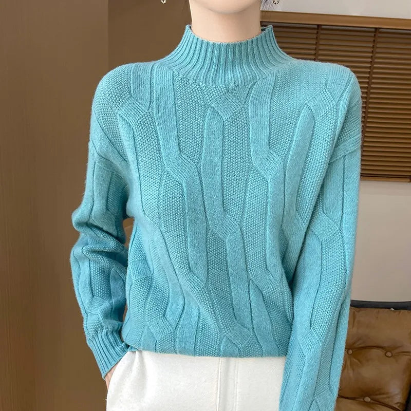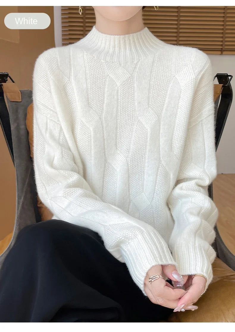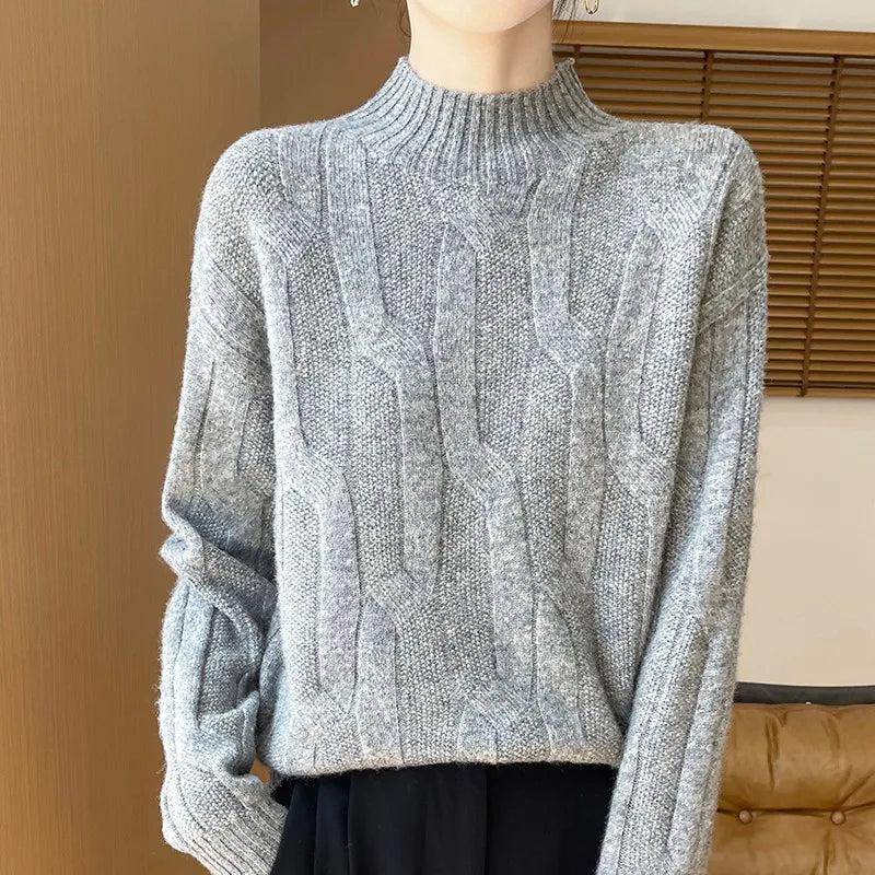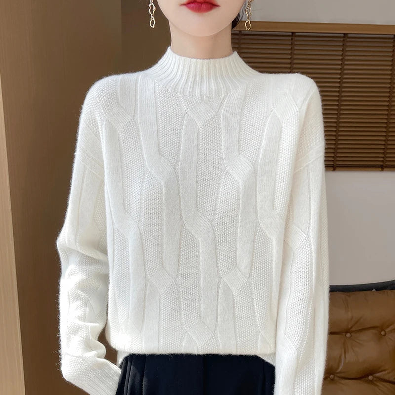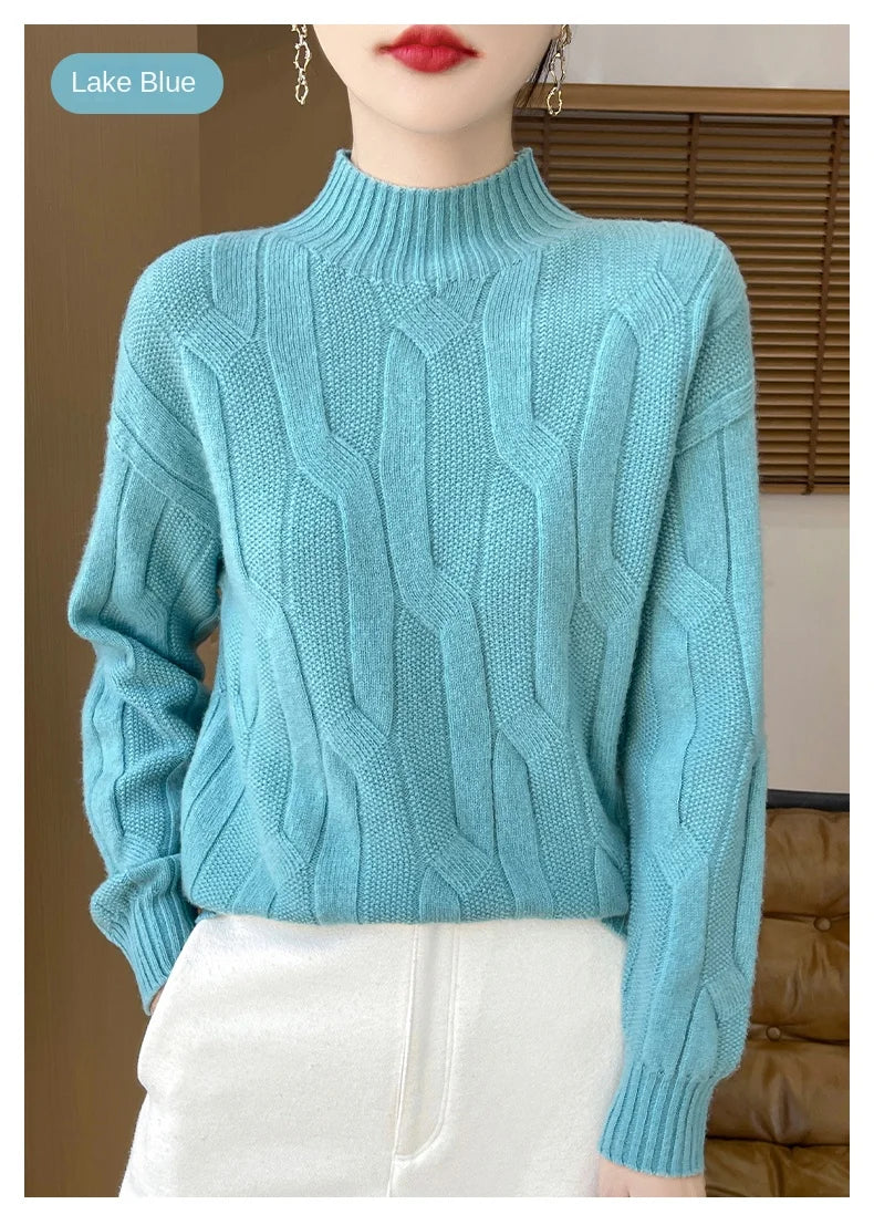 New Fashion Winter Merino Wool Pullover Sweater | Solid Color Long Sleeve