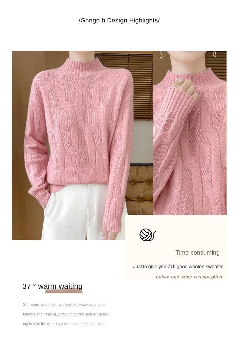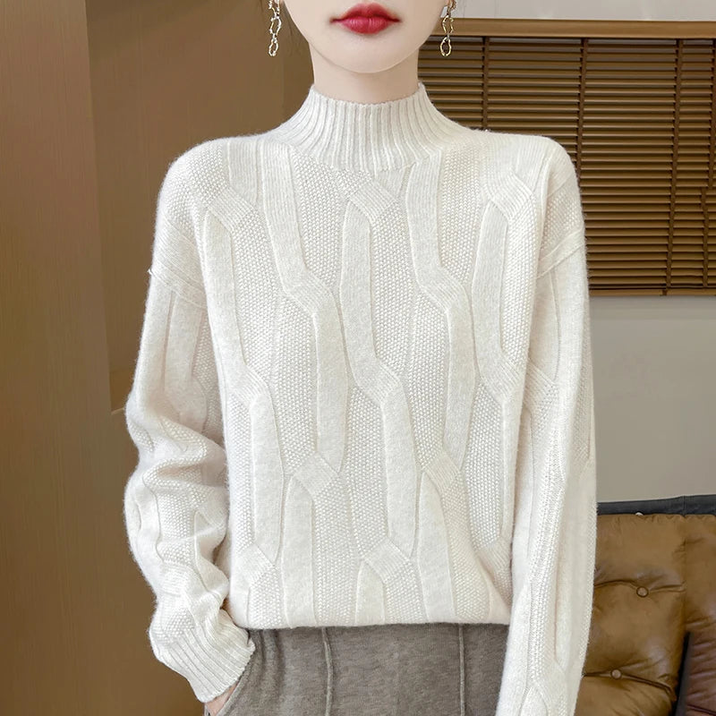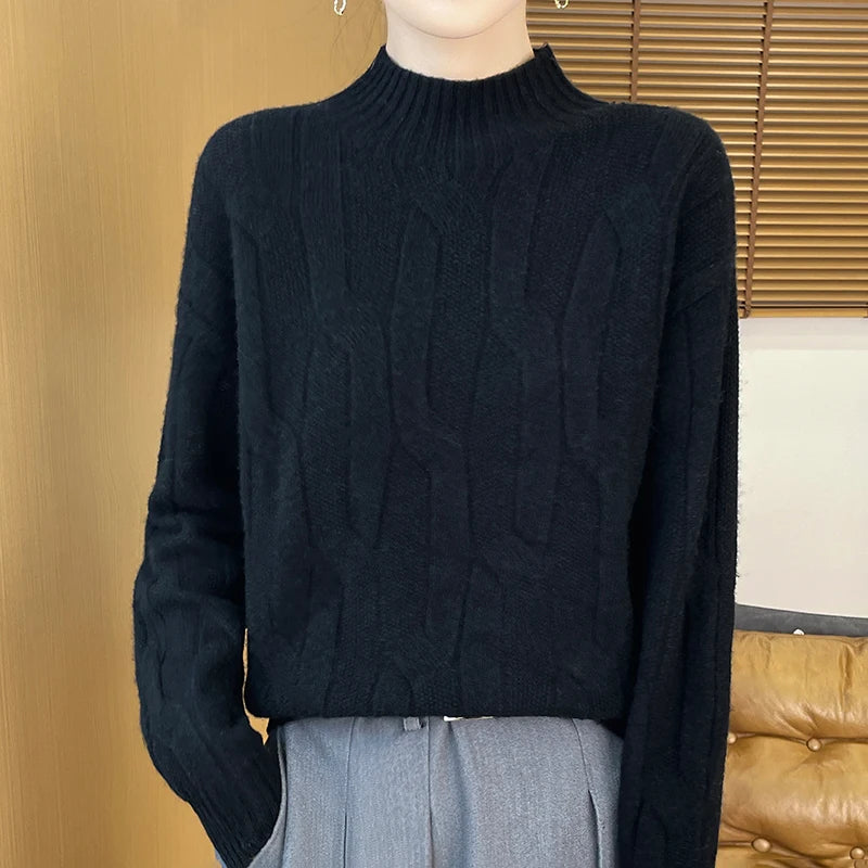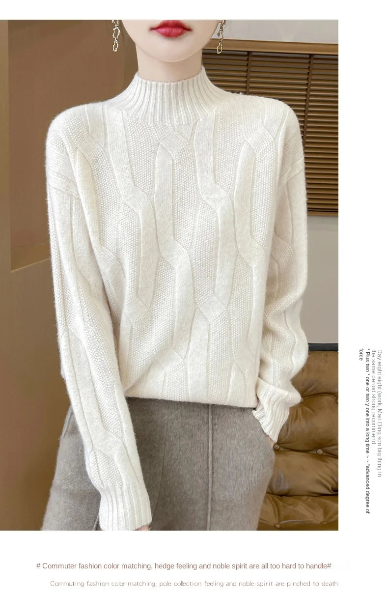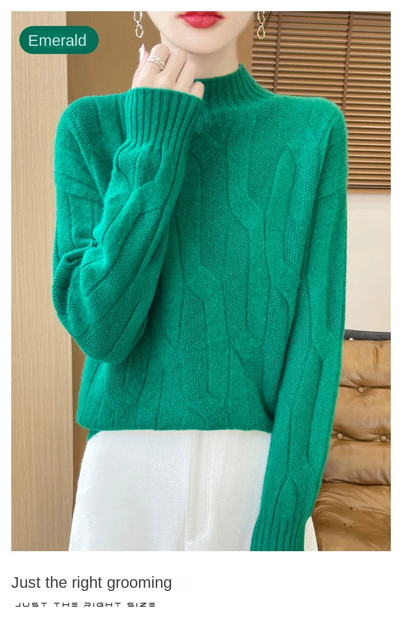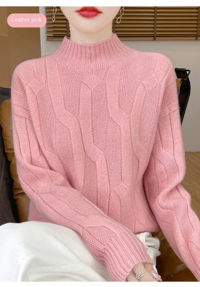 New Fashion Winter Merino Wool Pullover Sweater | Solid Color Long Sleeve
