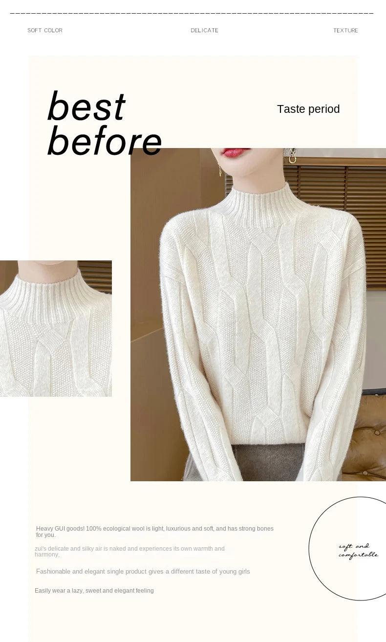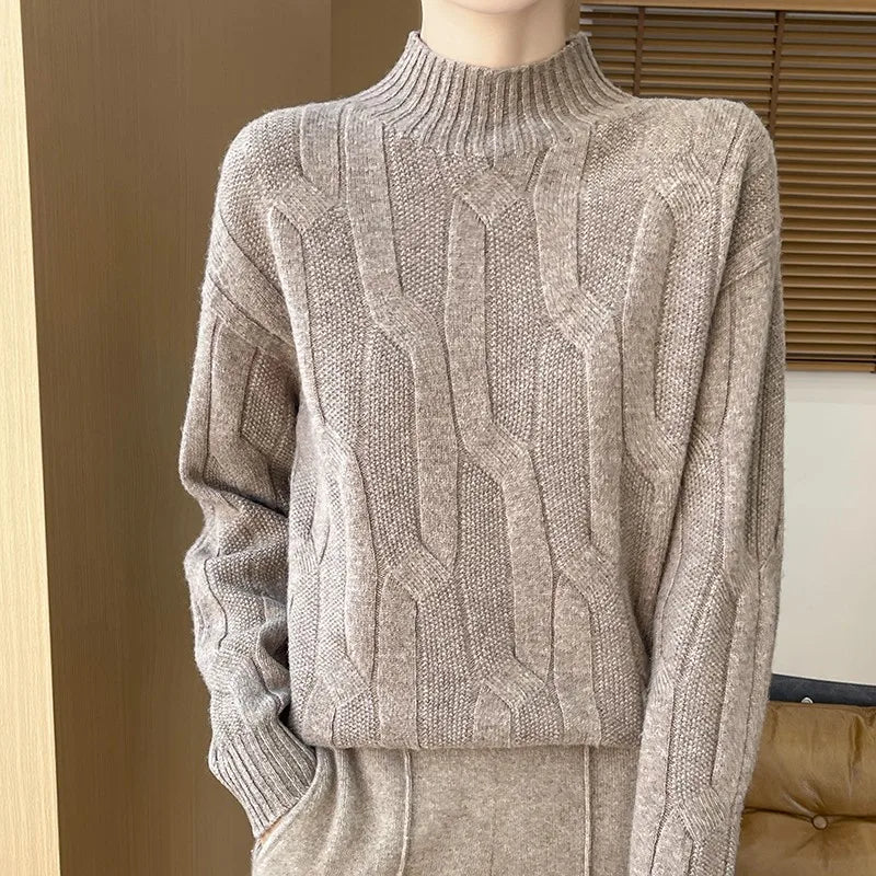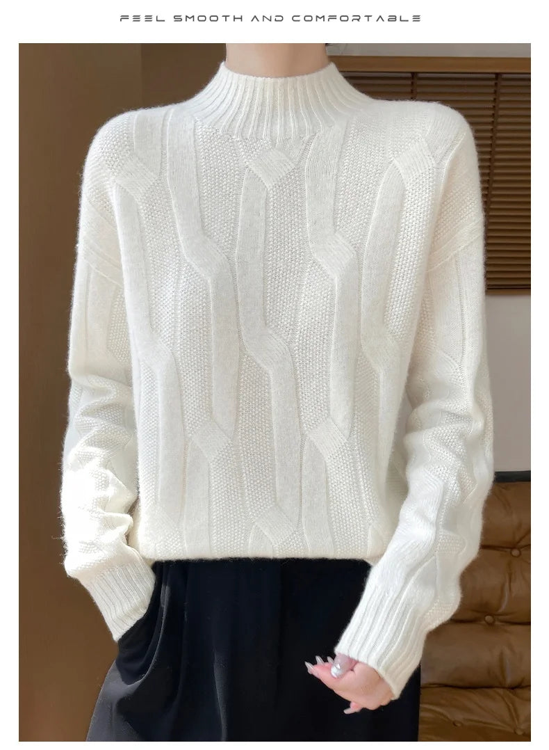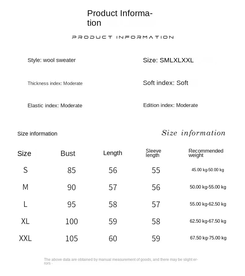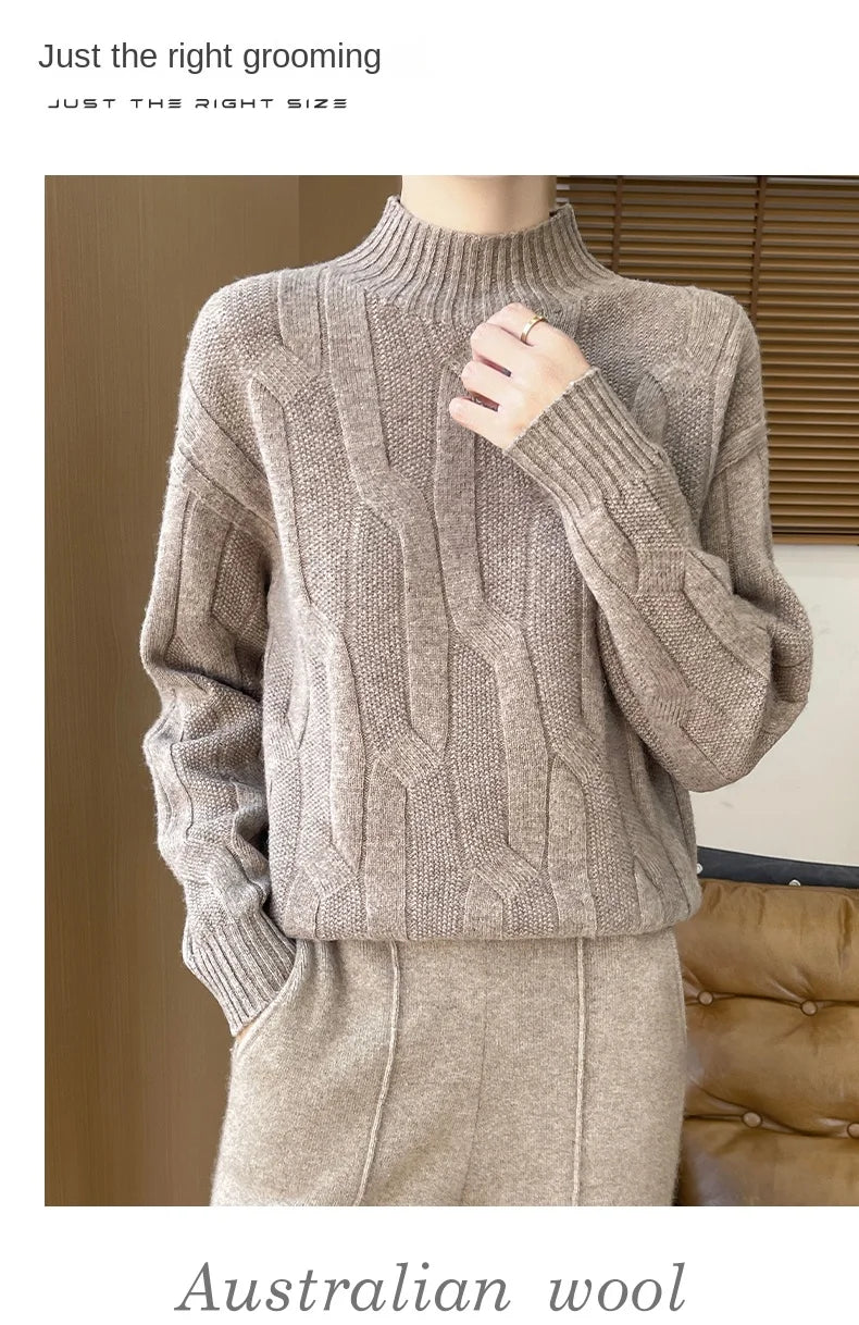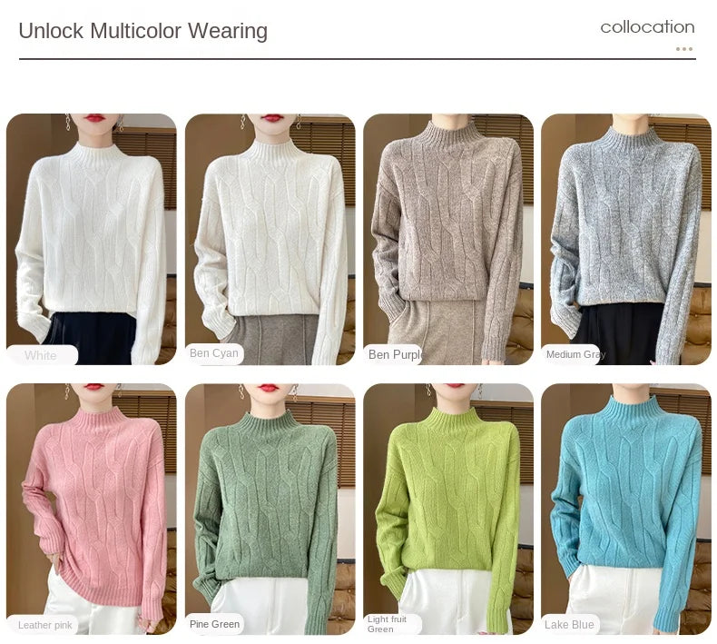 New Fashion Winter Merino Wool Pullover Sweater | Solid Color Long Sleeve