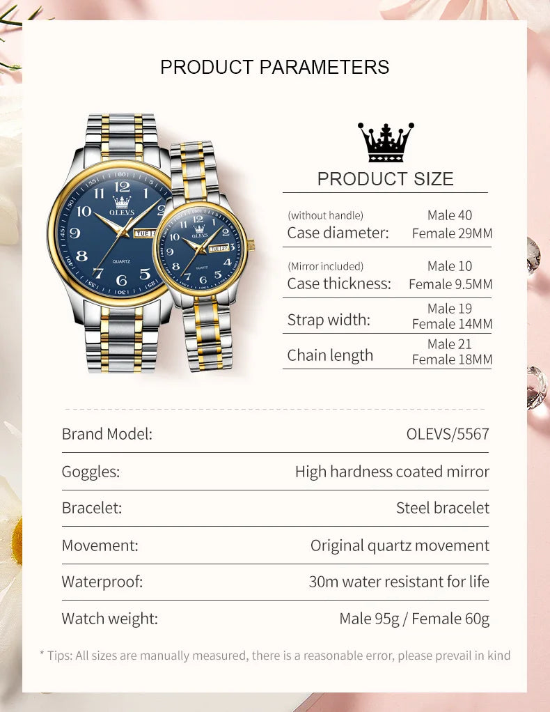 OLEVS 5567 Brand Couple Quartz Waterproof Wristwatch for Lover | Wristwatch Simple Fashion