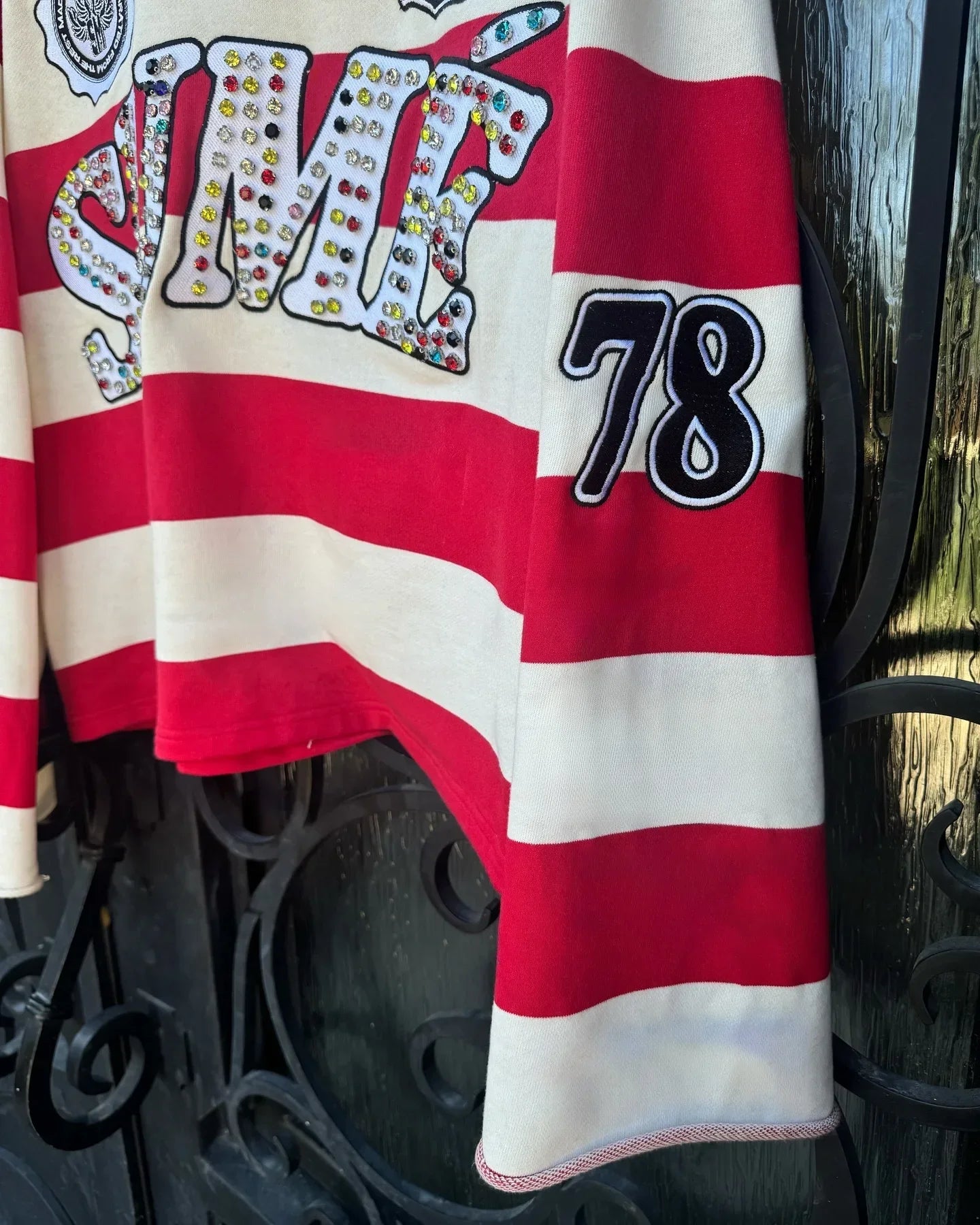 Y2k Jackets Women | American Classic Letter Patchwork Stripe T Shrits | Trend Oversized Tops